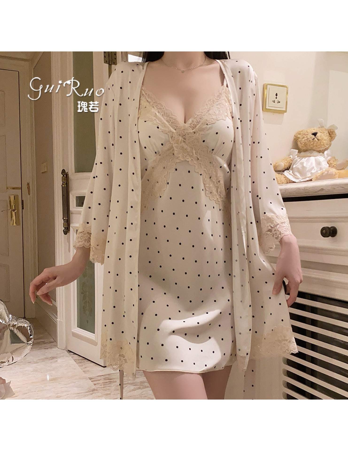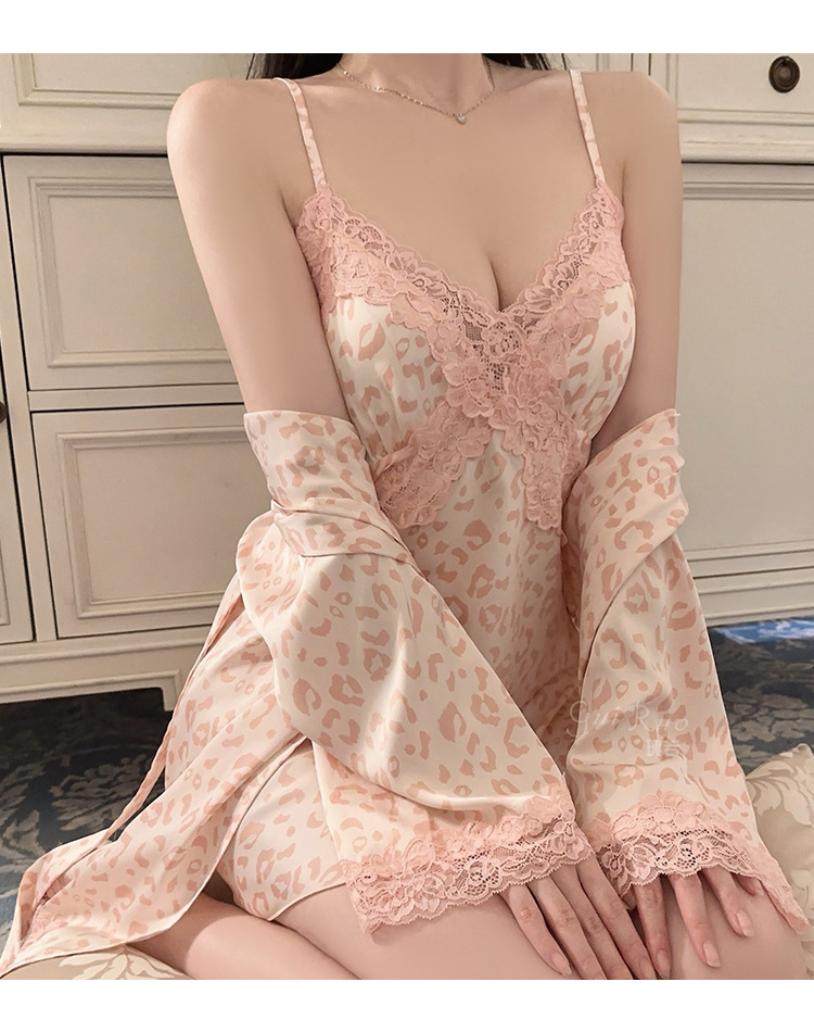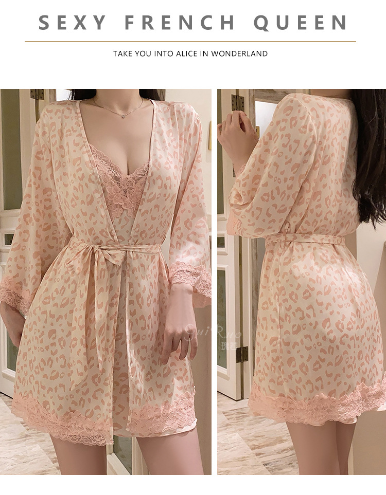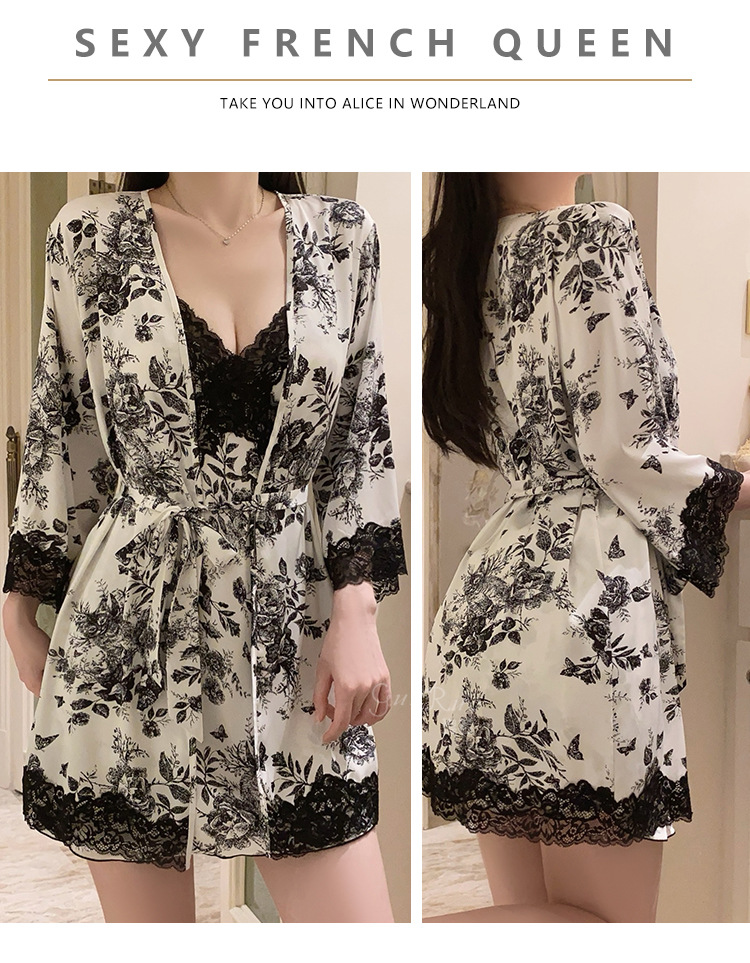 LPLT6319100076 大碼內衣火辣純欲印花緞面蕾絲女睡裙外袍家居誘惑套裝