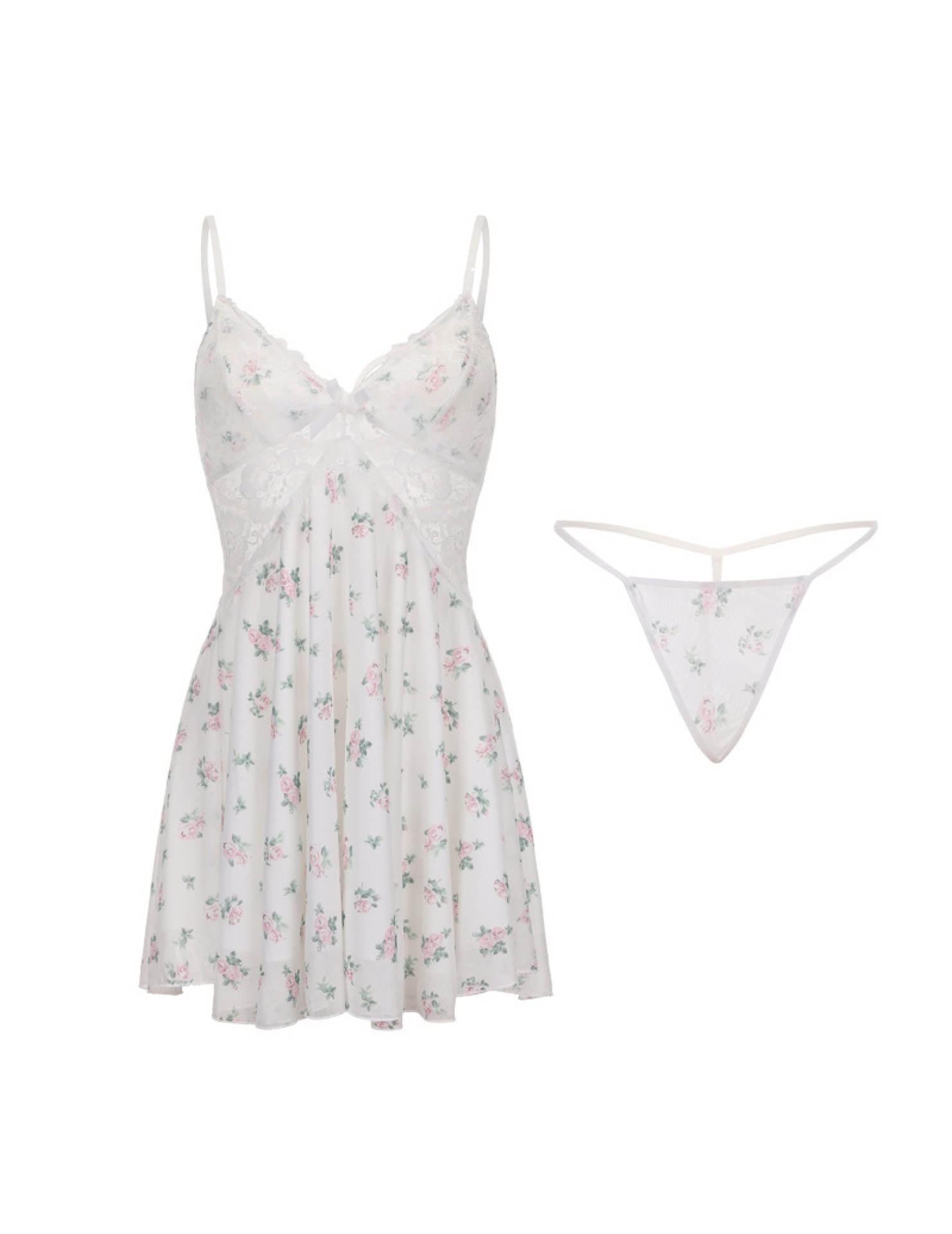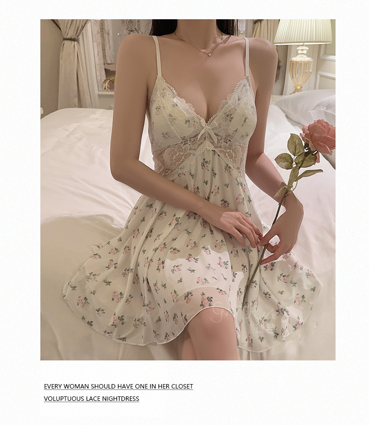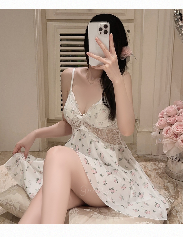LPLT6319100077 內衣純欲誘惑加胸墊甜美碎花透視蕾絲睡裙家居套裝