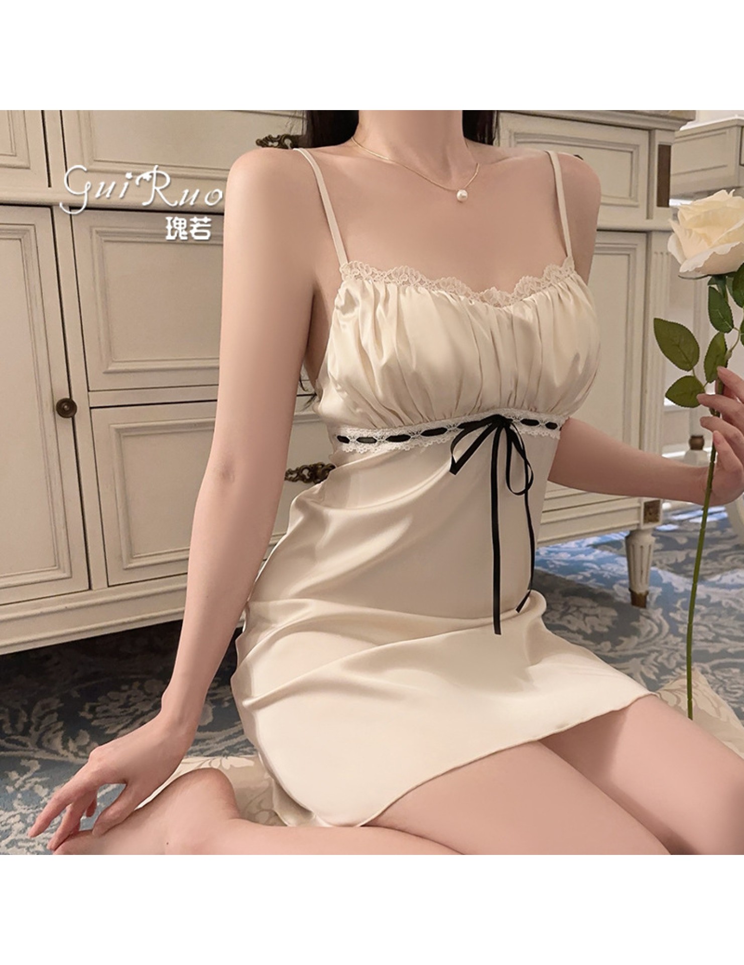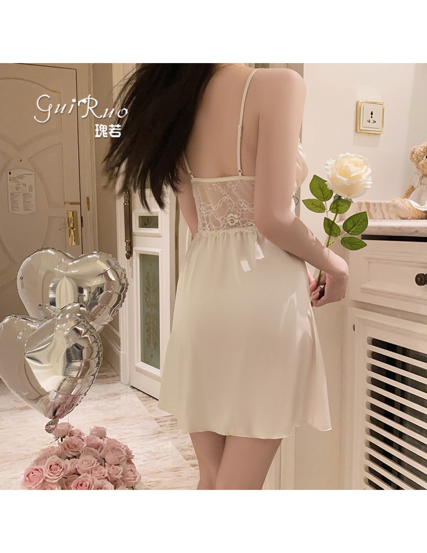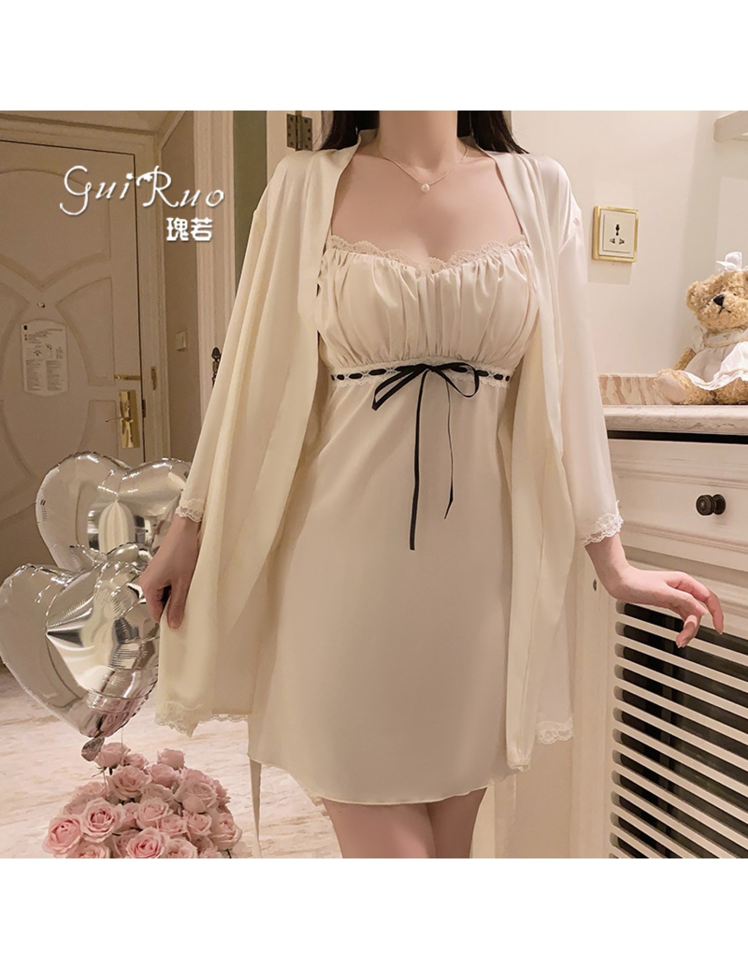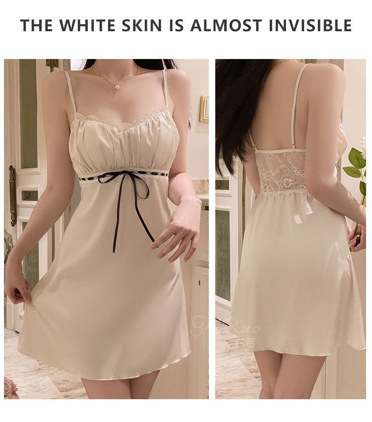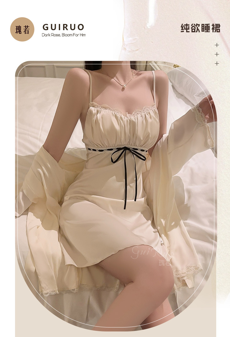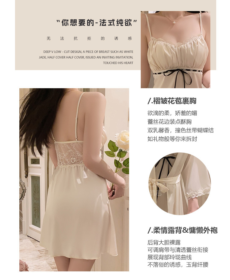 LPLT6319100084 輕奢加胸墊內衣甜美蕾絲性感褶皺睡裙外袍家居套裝
