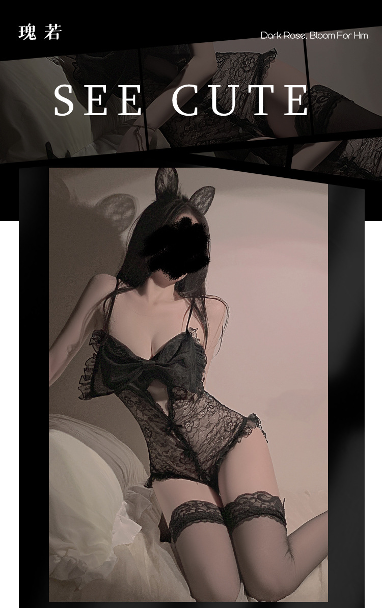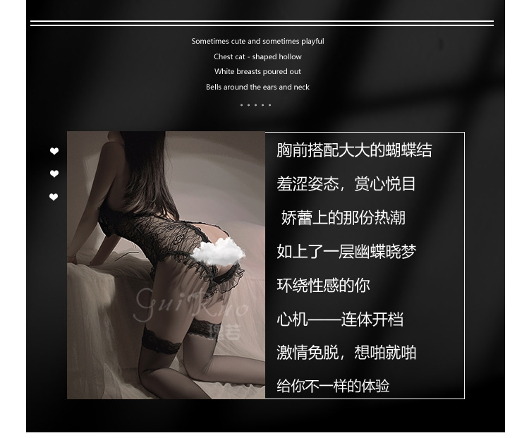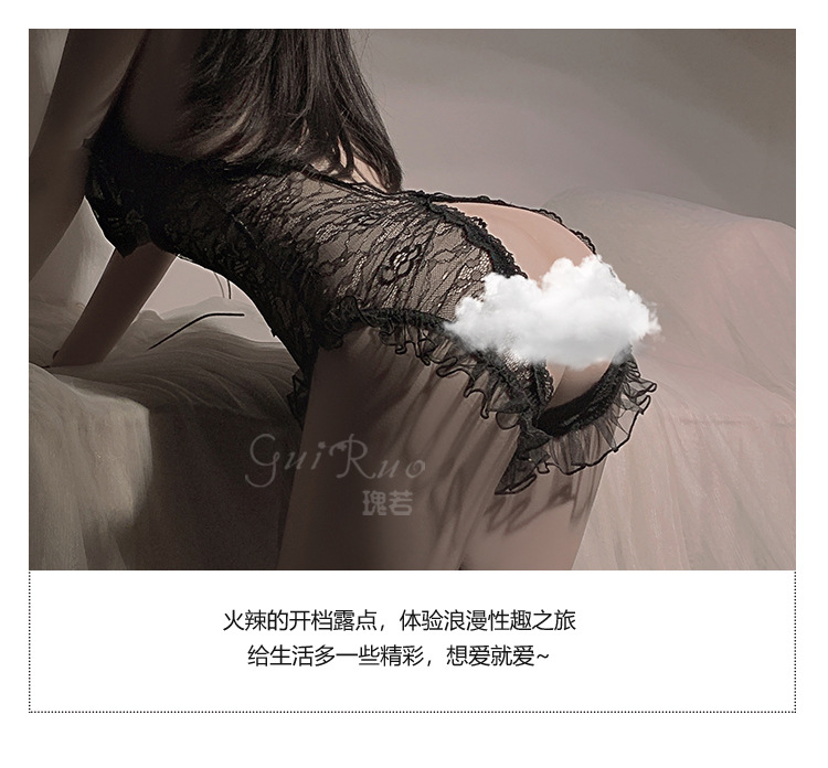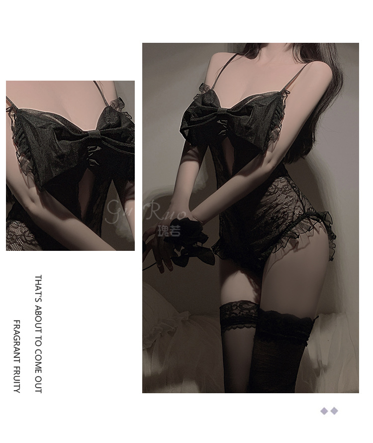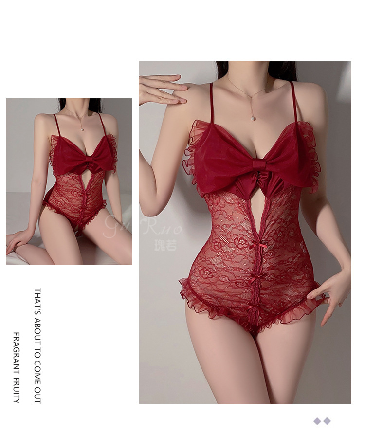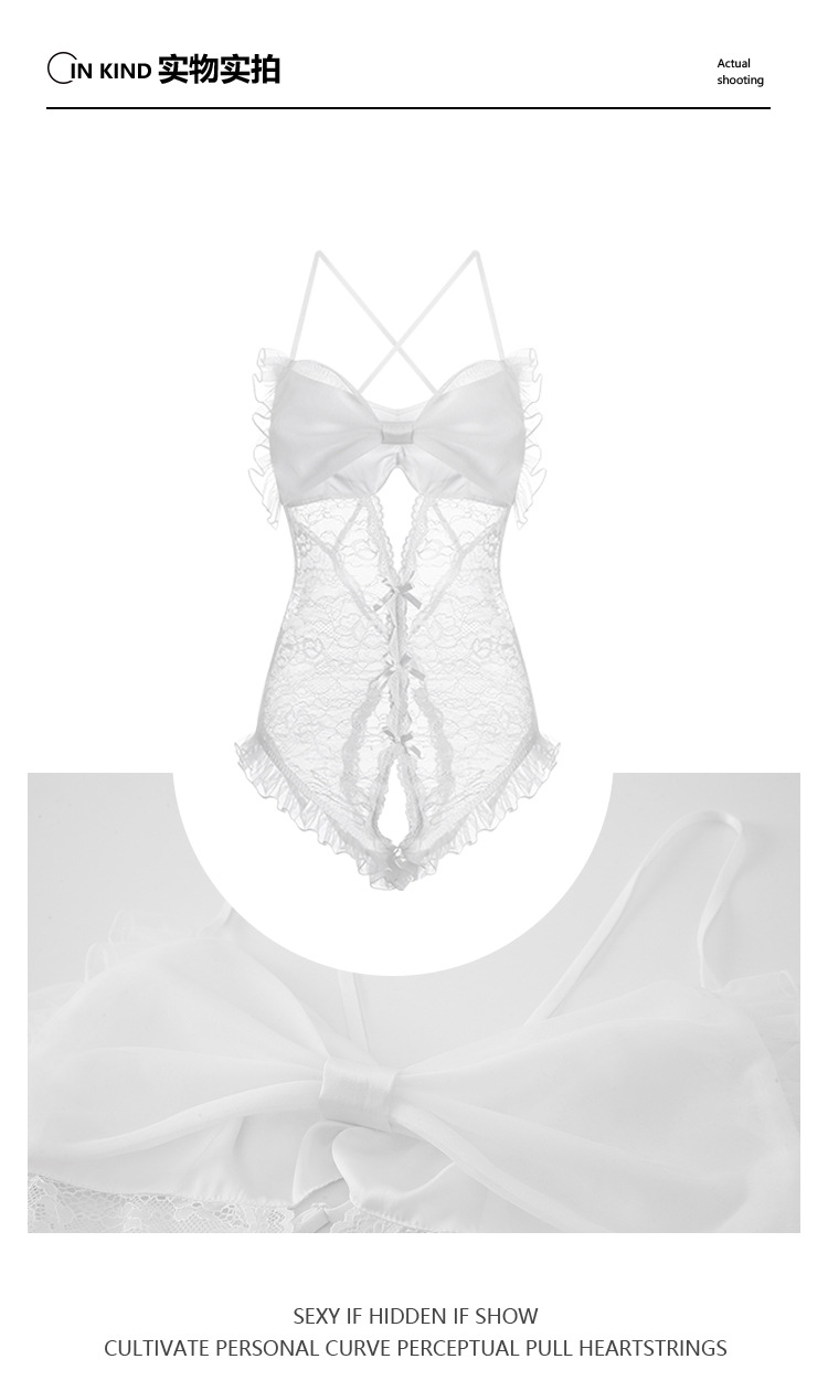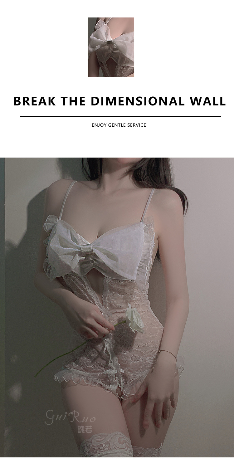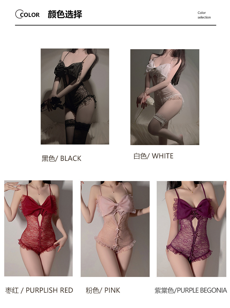 LPLT6319100093 夏季情趣內衣透視網紗蕾絲蝴蝶結開襠連體衣大碼制服套裝