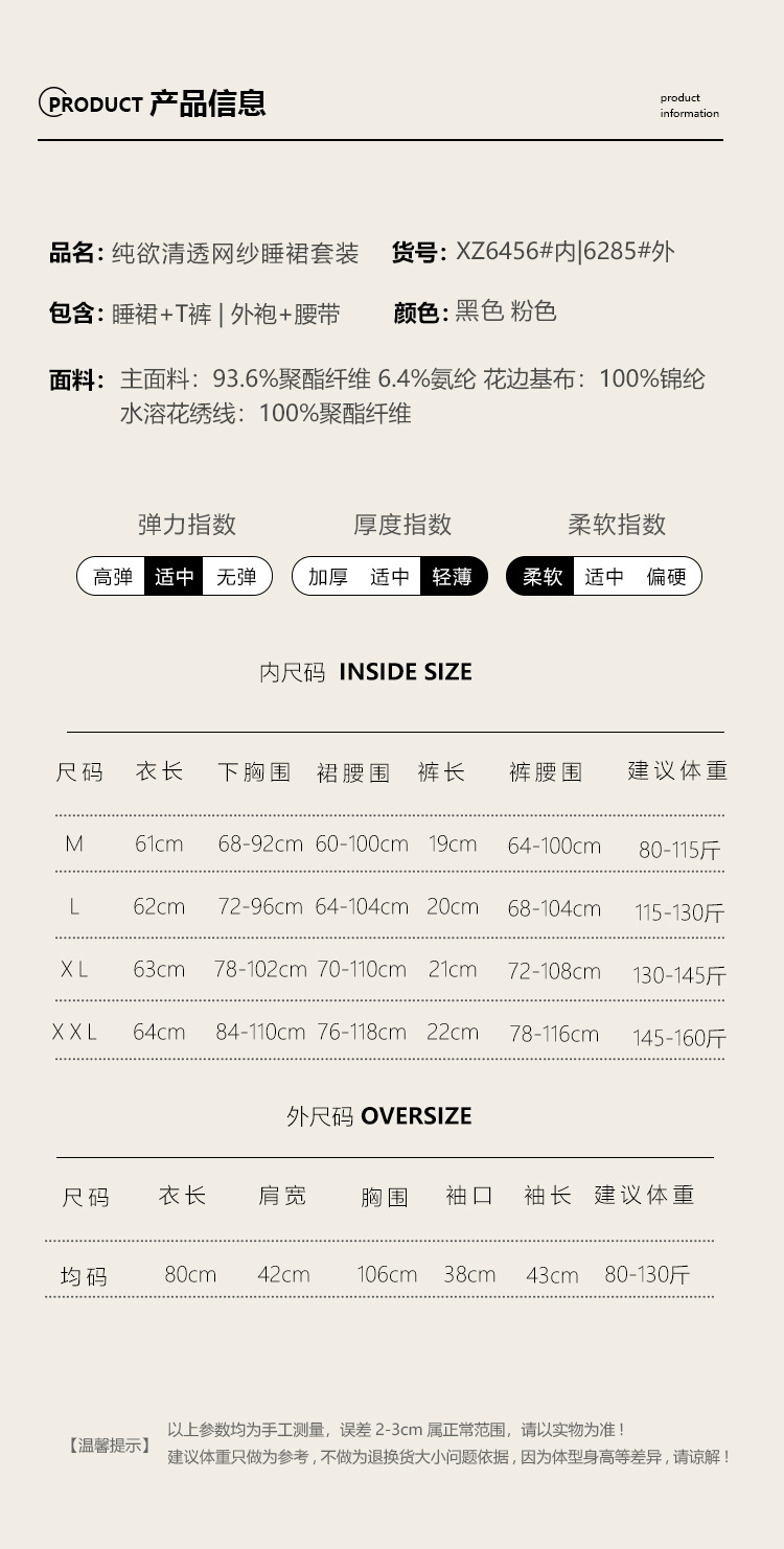 XZ6456黑色(睡裙+T褲)