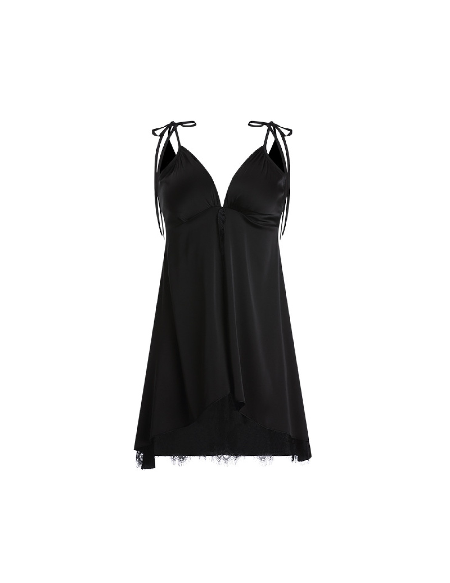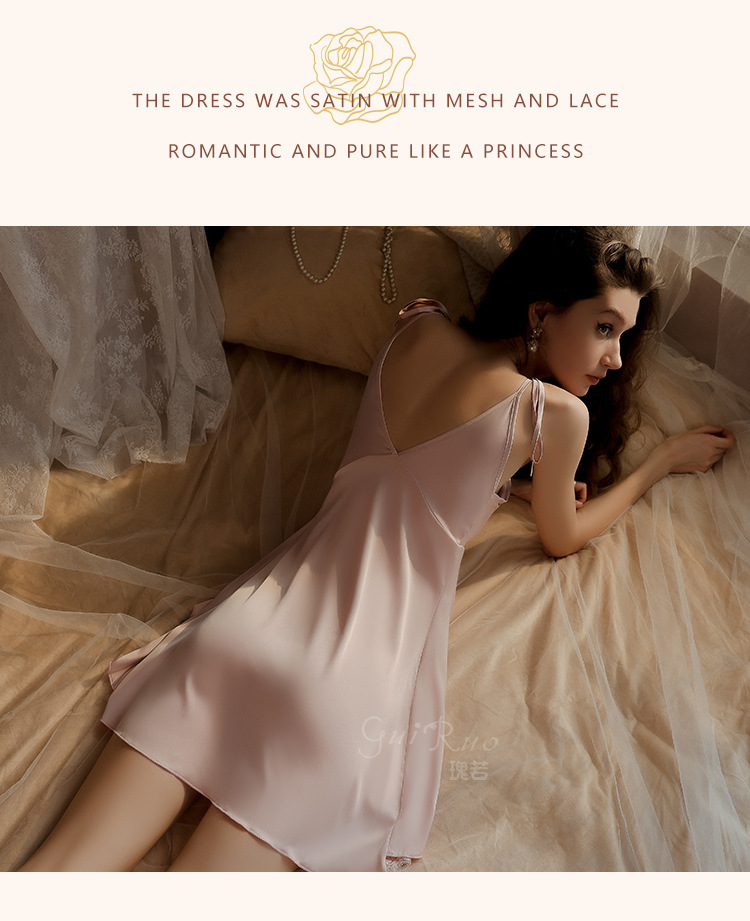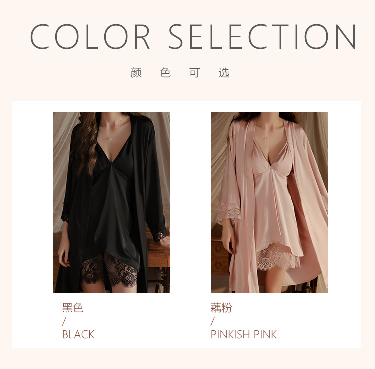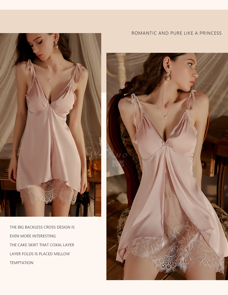 LPLT6319100102 深V聚攏加胸墊睡衣純欲開衩網紗蕾絲女吊帶睡裙外袍套裝