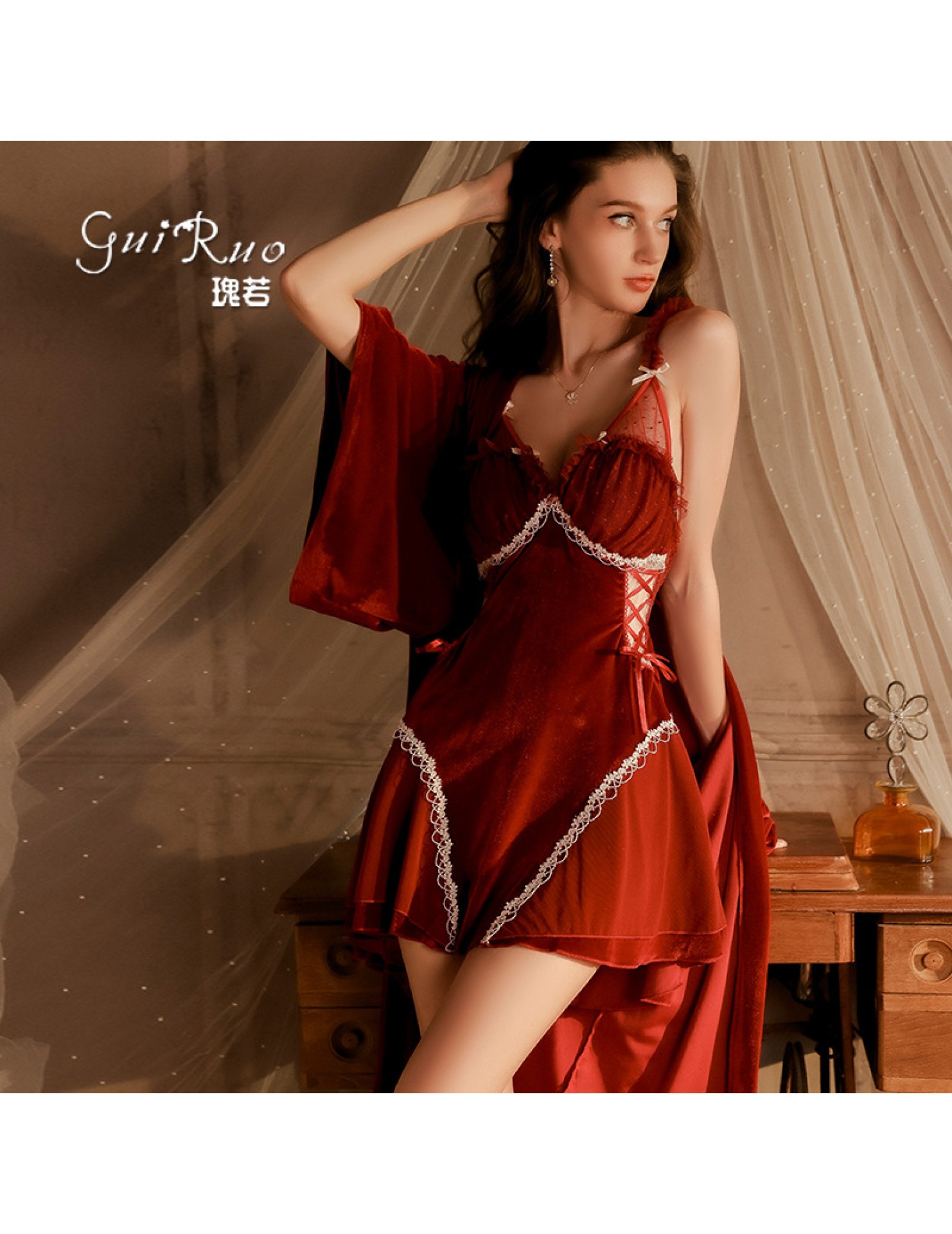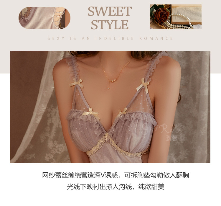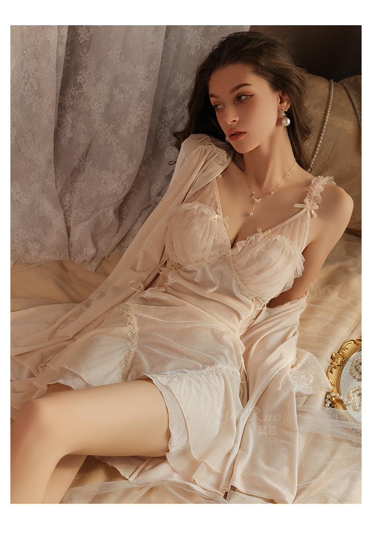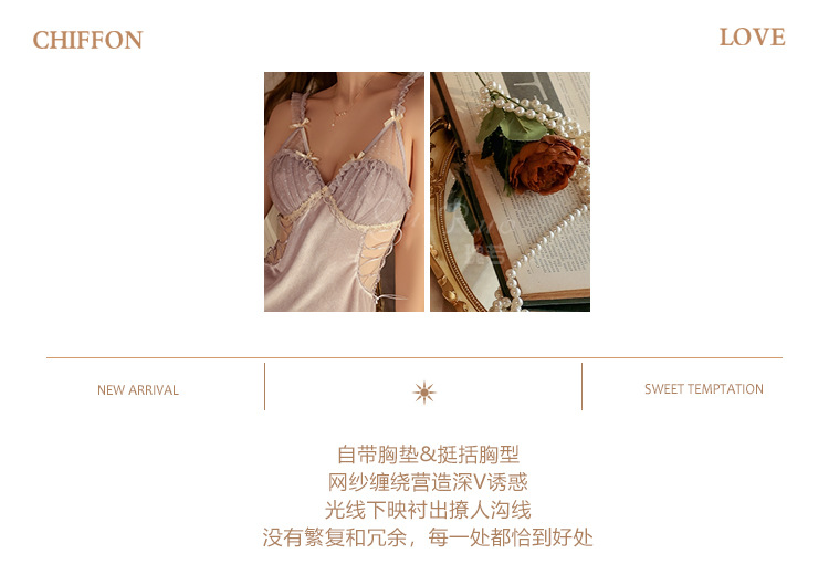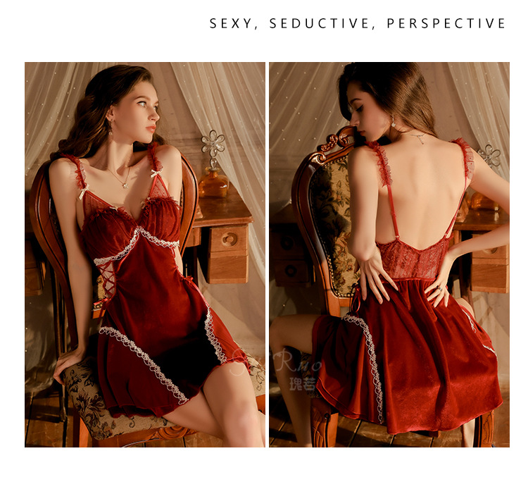 LPLT6319100103 絲絨內衣透視露背深V誘惑加胸墊純欲睡裙外袍家居服套裝