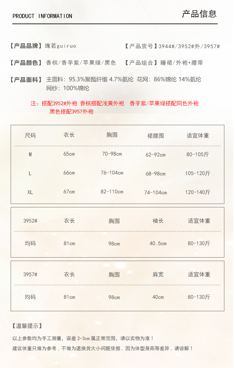 3944香檳色(睡裙)