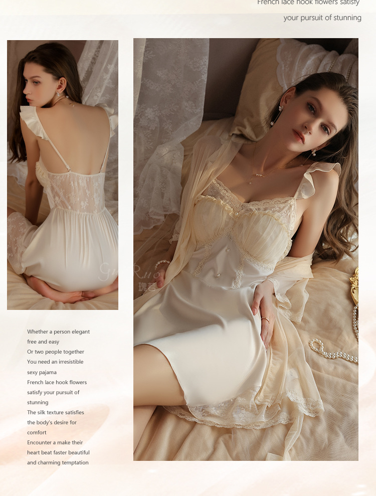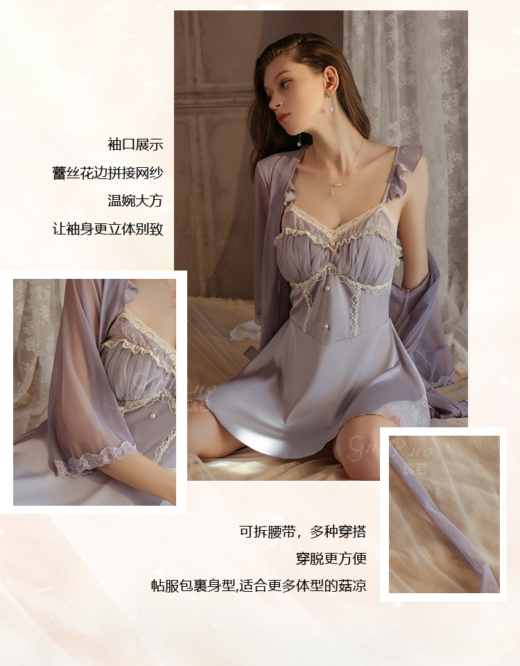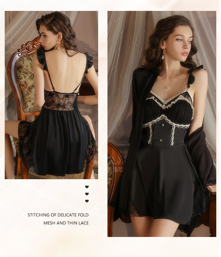LPLT6319100105 大碼加胸墊聚攏冰絲露背舒適吊帶睡裙外袍女士家居服套裝