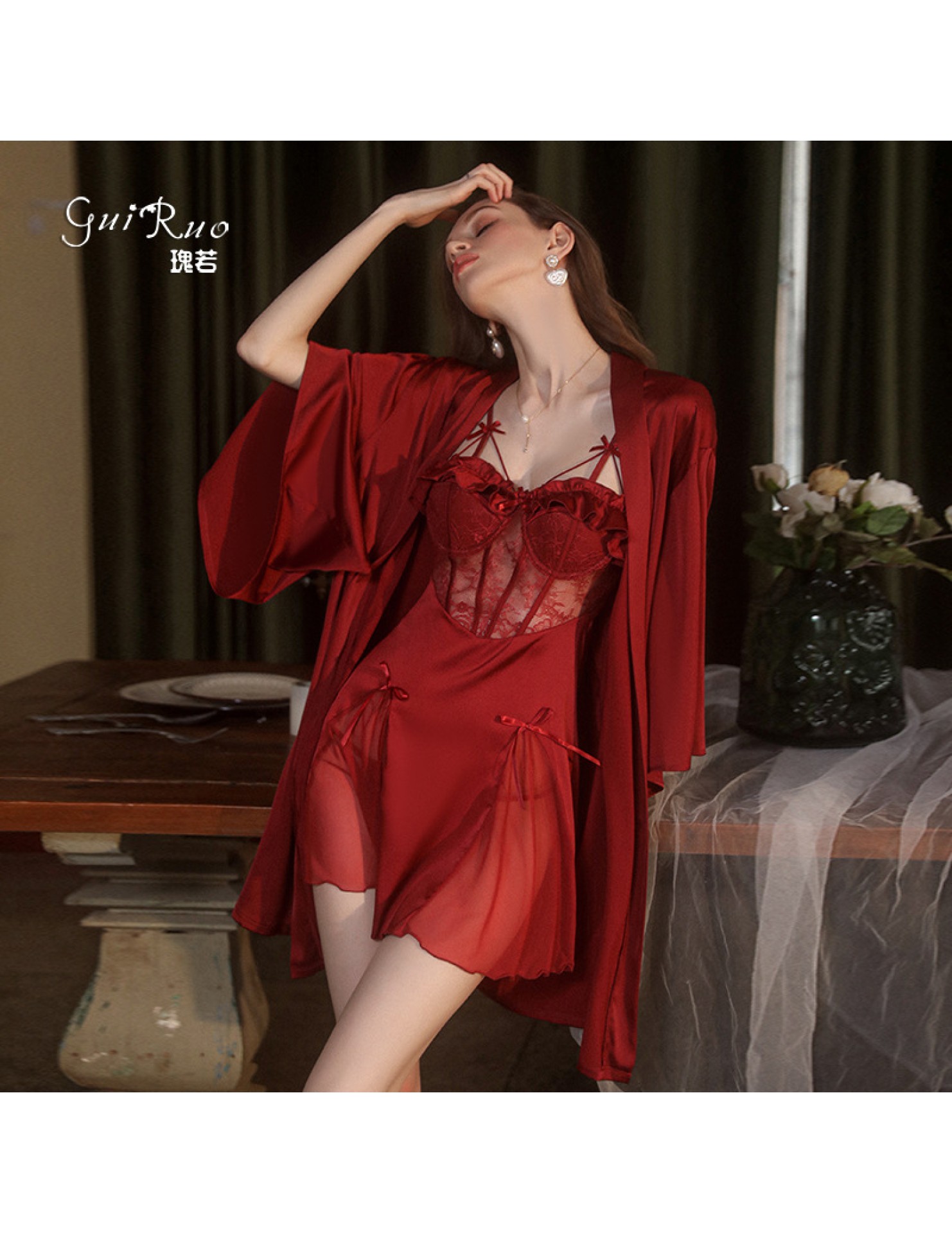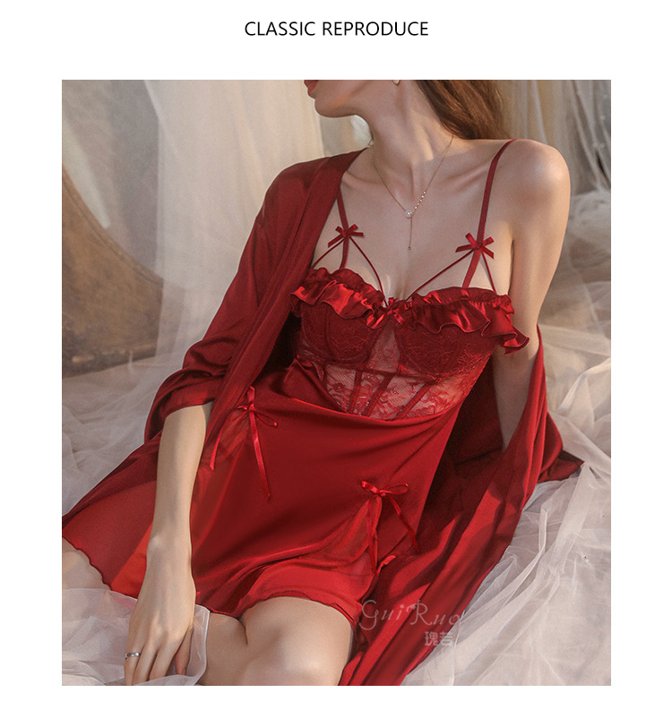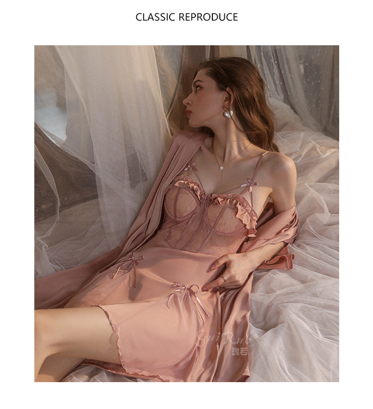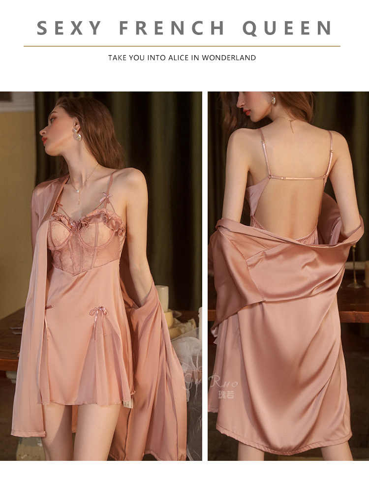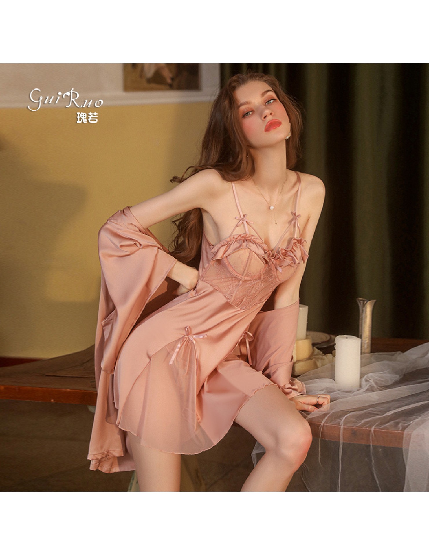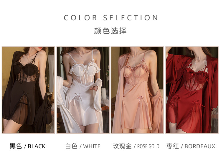 LPLT6319100106 秋冬性感鋼圈聚攏私房睡衣純色吊帶睡裙外袍女家居服套裝