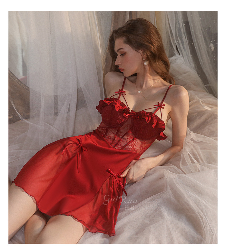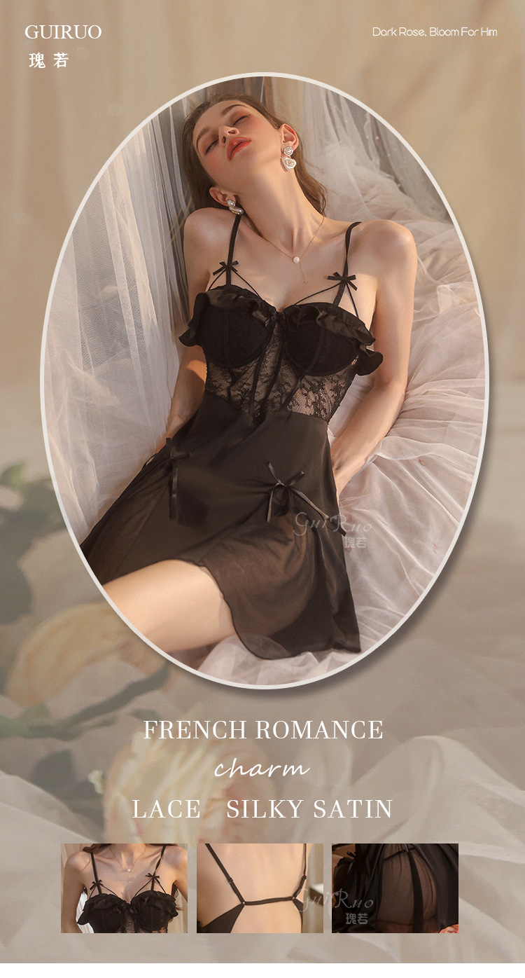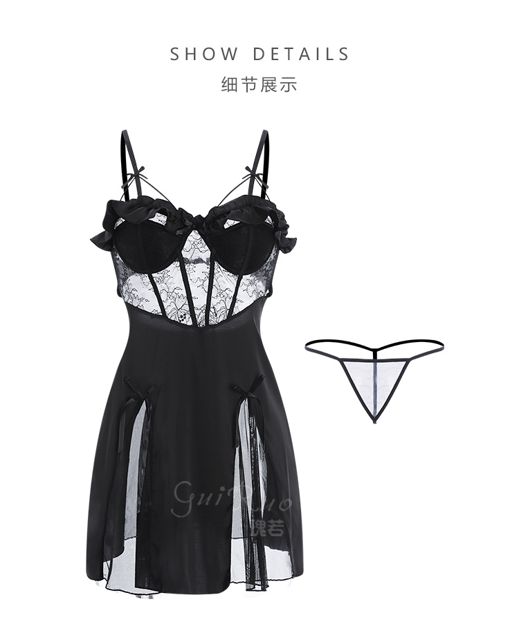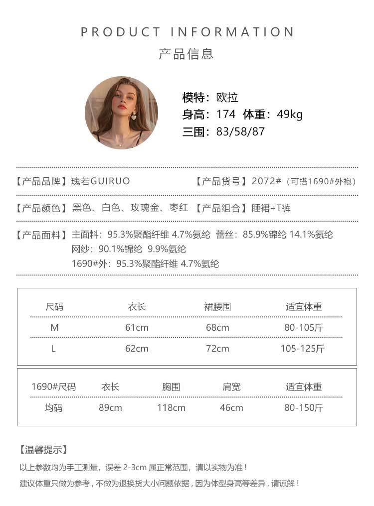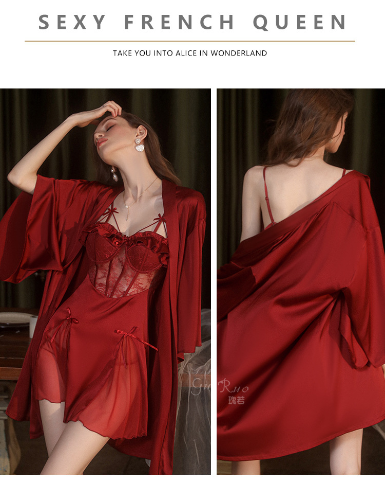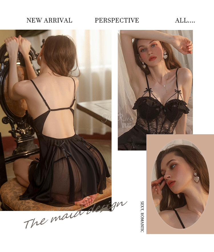 LPLT6319100106 秋冬性感鋼圈聚攏私房睡衣純色吊帶睡裙外袍女家居服套裝