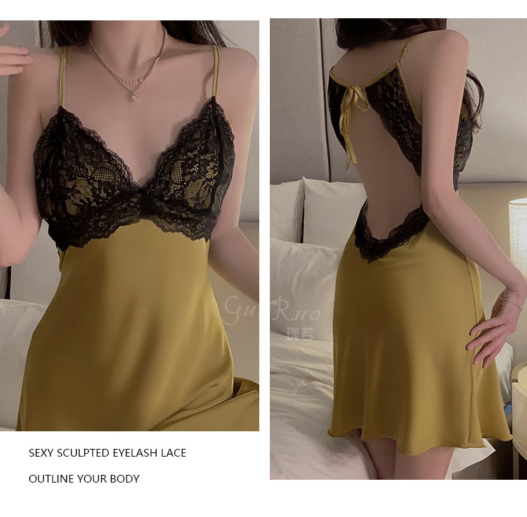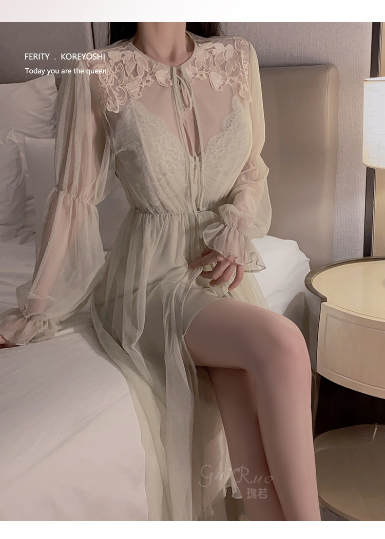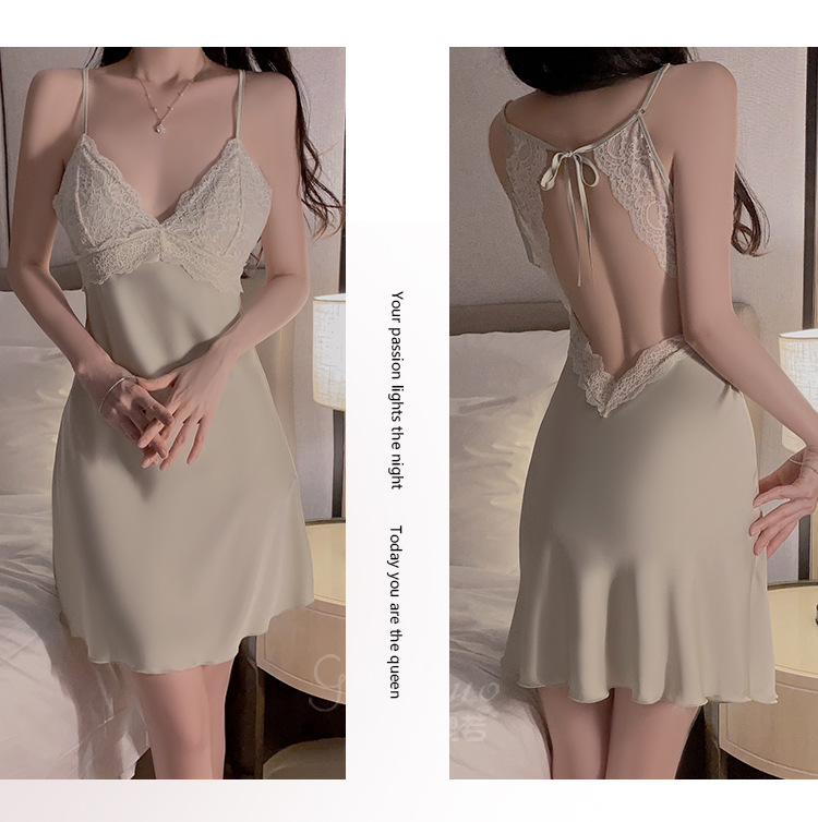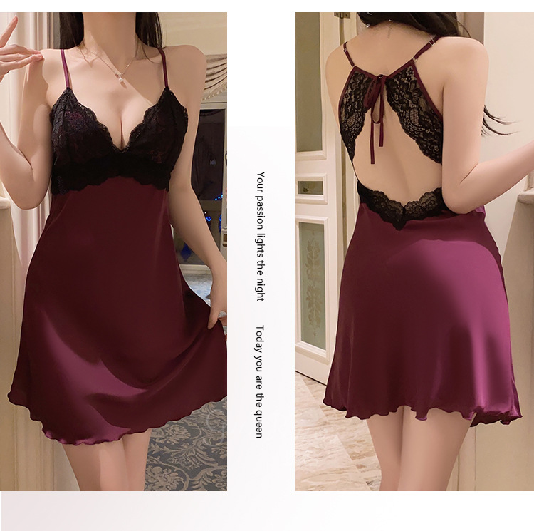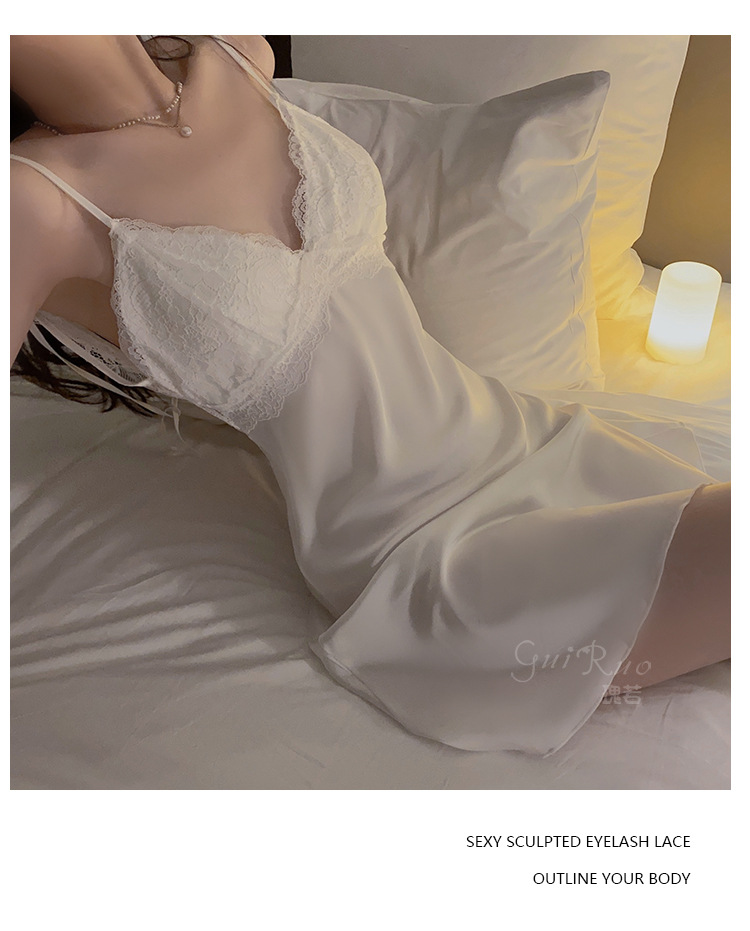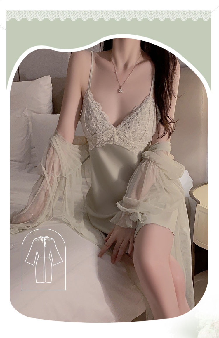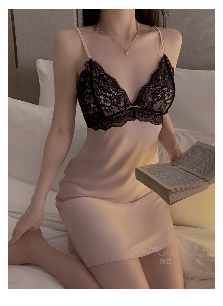 LPLT6319100115 聚攏加胸墊內衣純欲甜美大碼慵懶風吊帶睡裙家居誘惑套裝