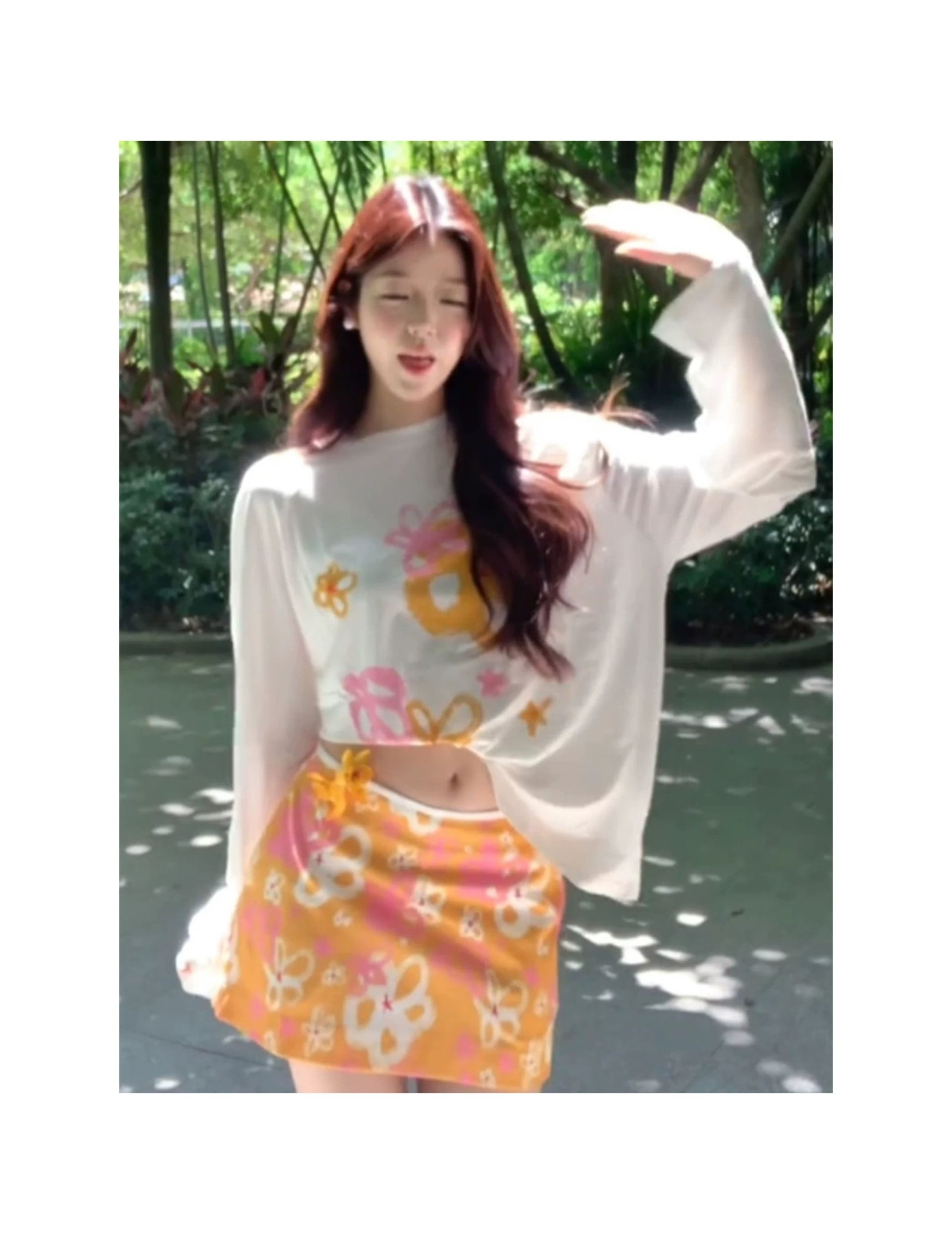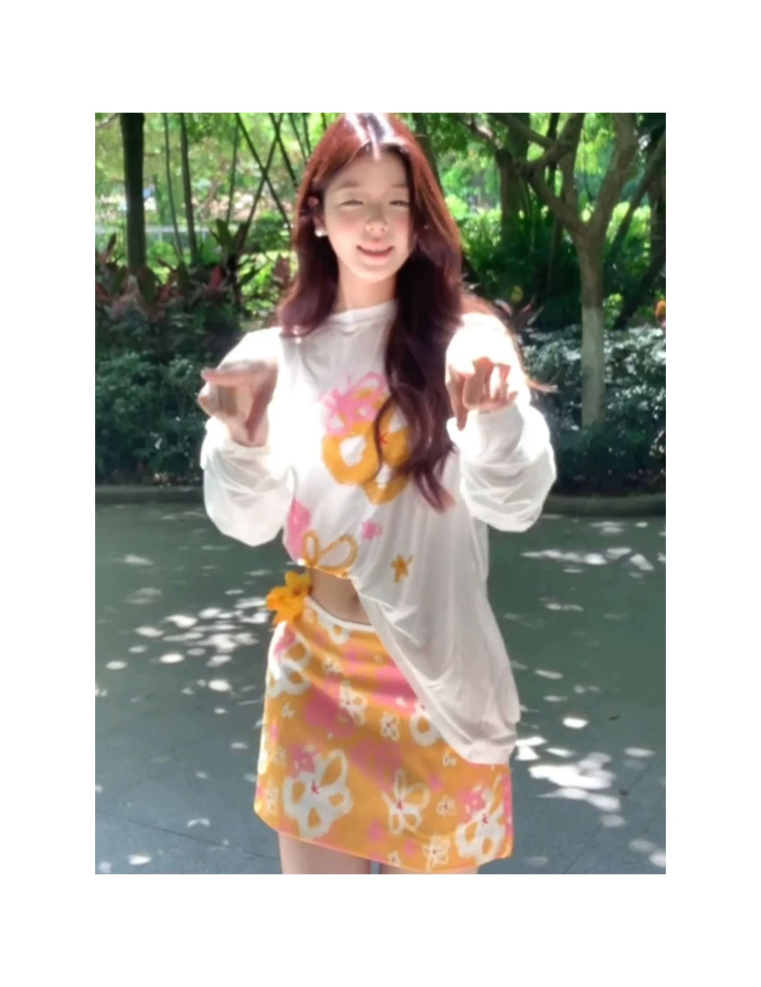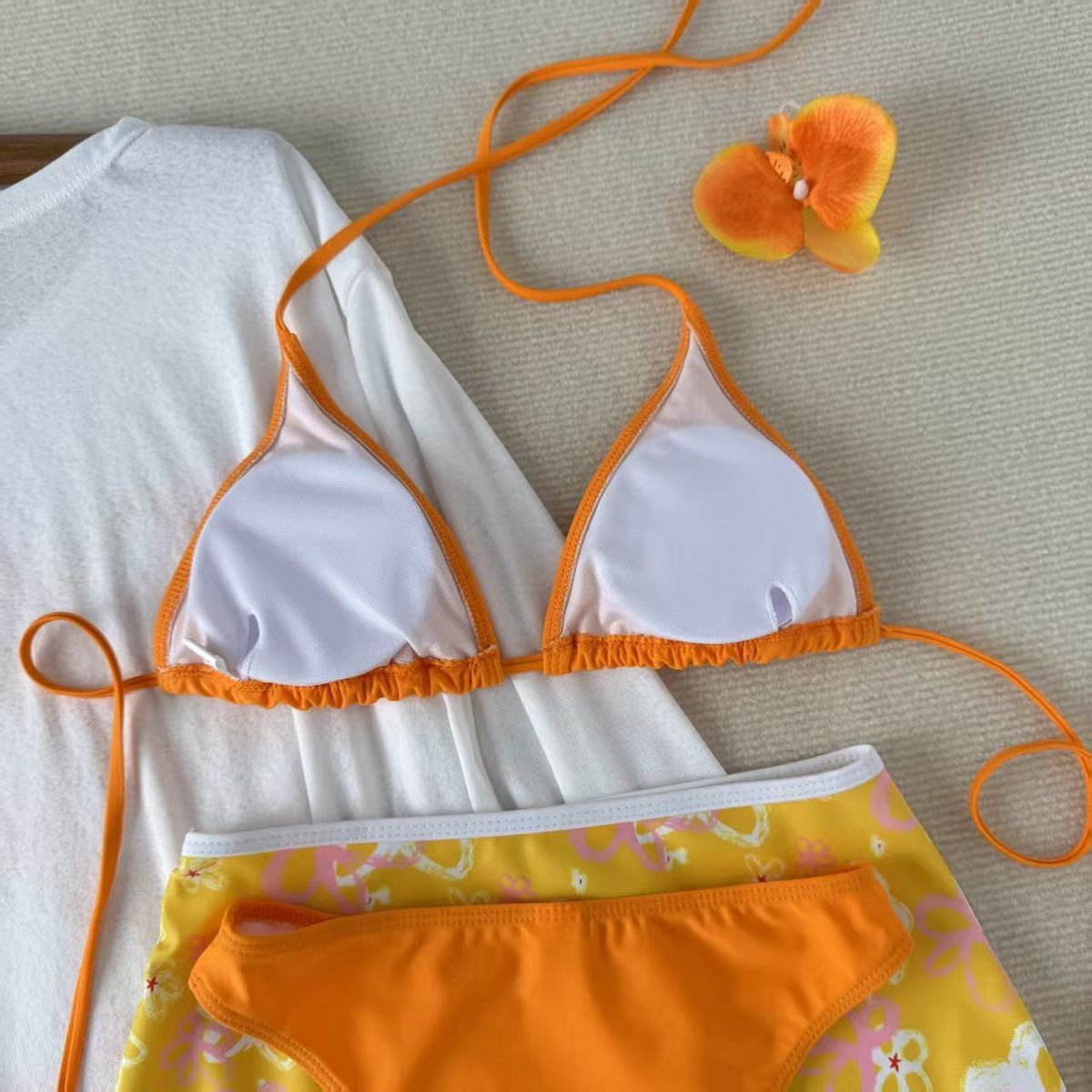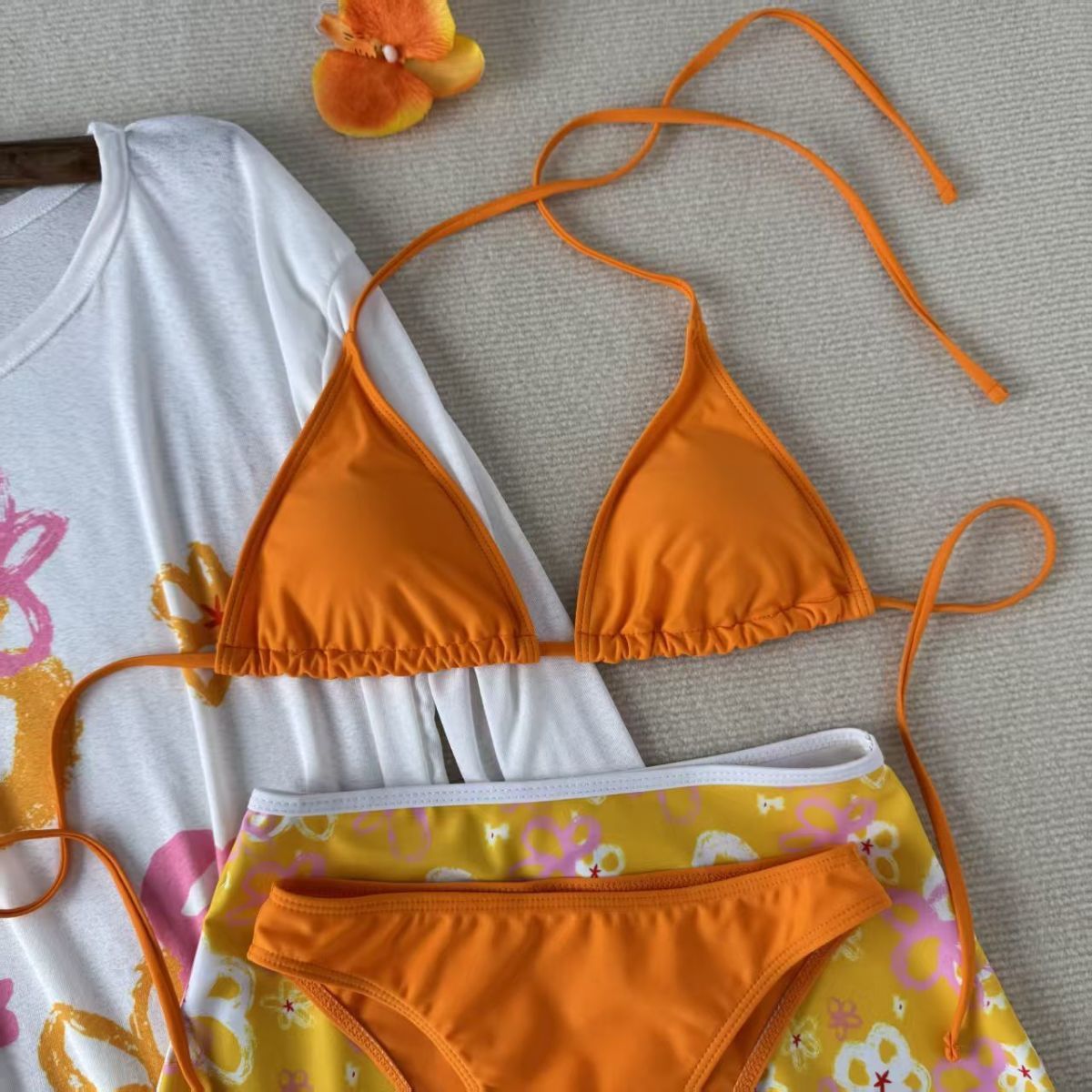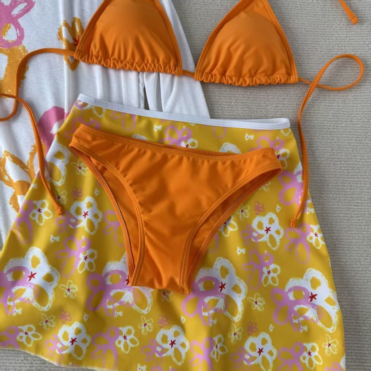 HSPN6406100002 夏日橙橙色印花顯瘦性感比基尼四件套度假海島超出片