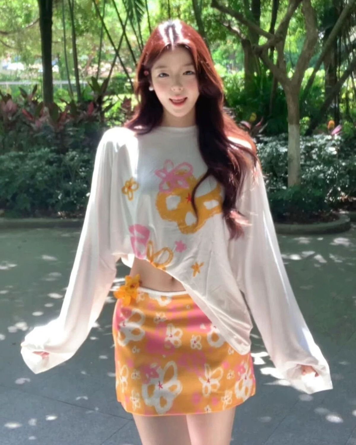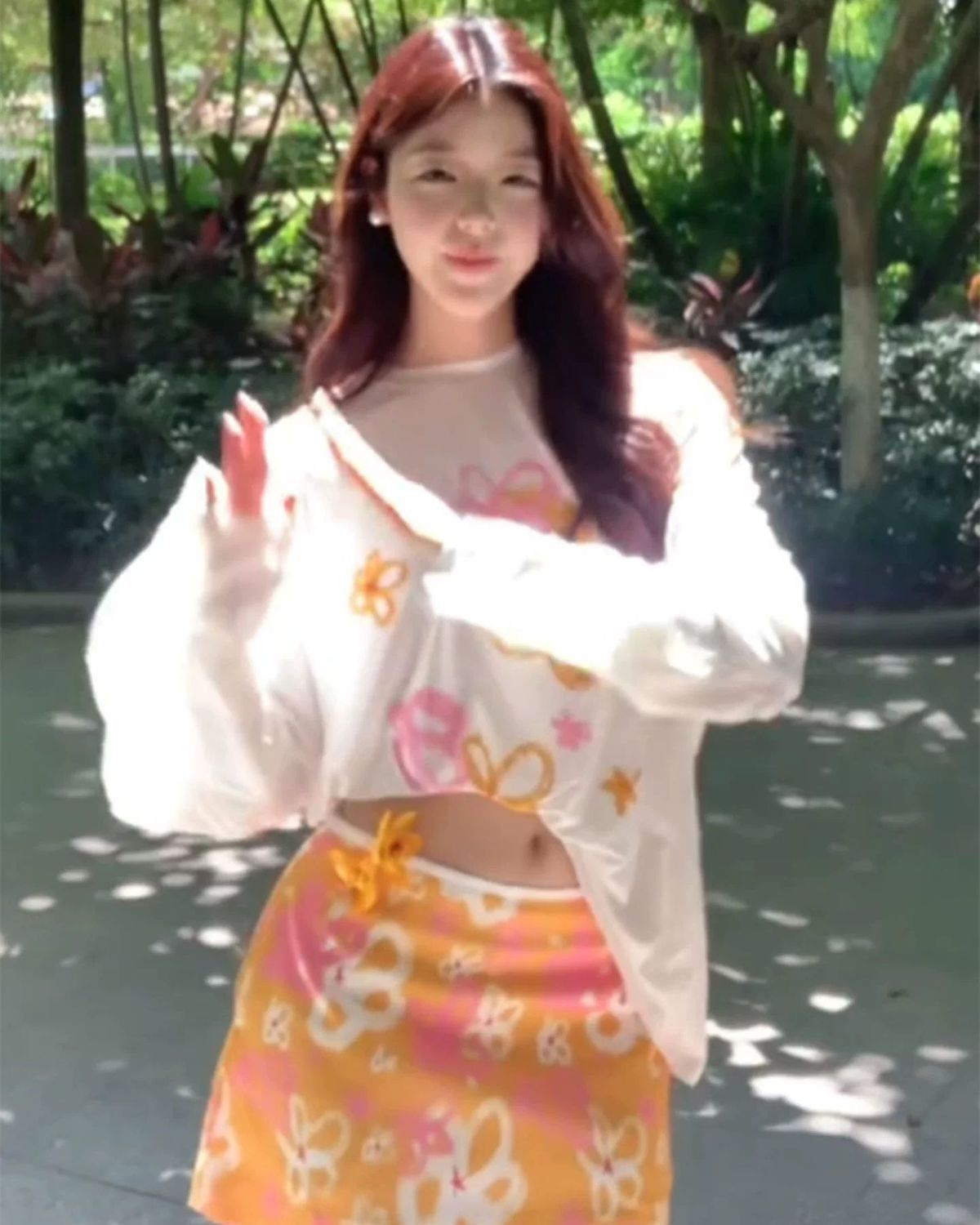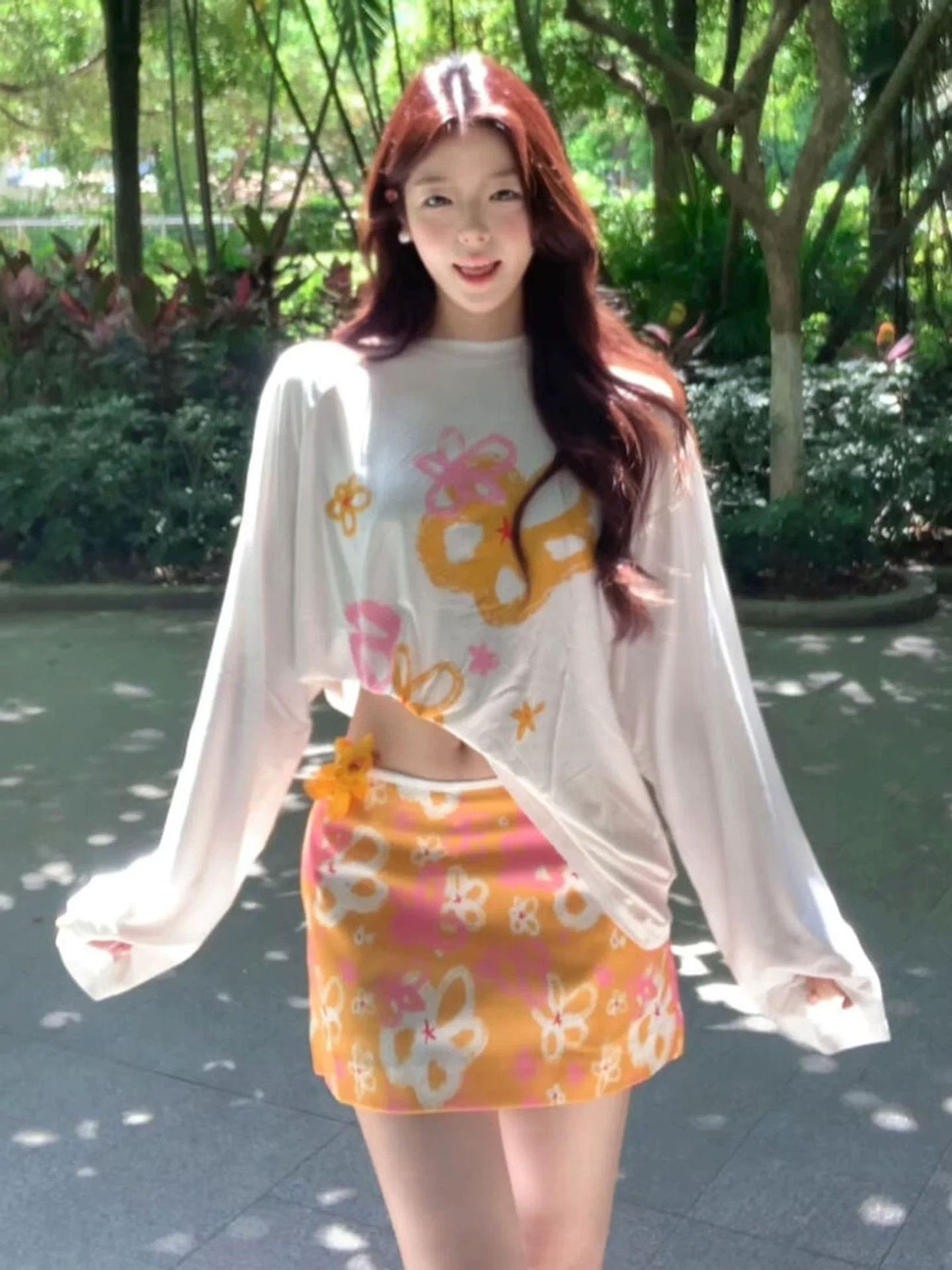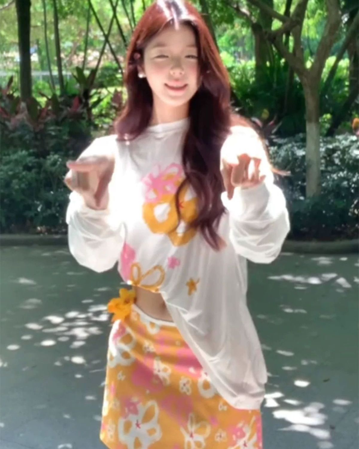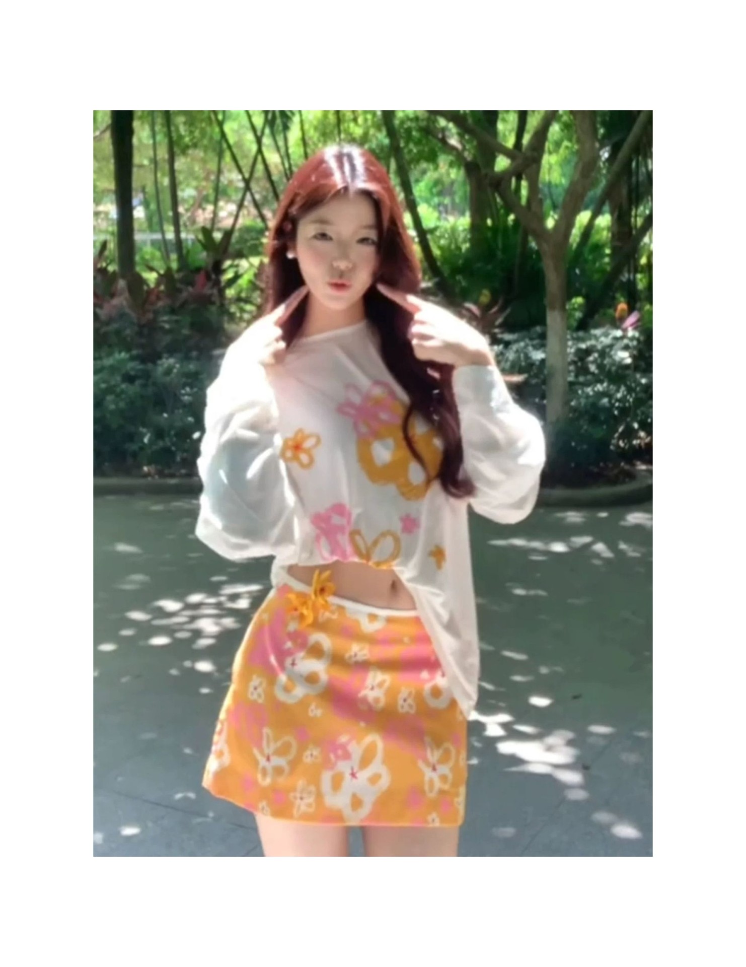 HSPN6406100002 夏日橙橙色印花顯瘦性感比基尼四件套度假海島超出片