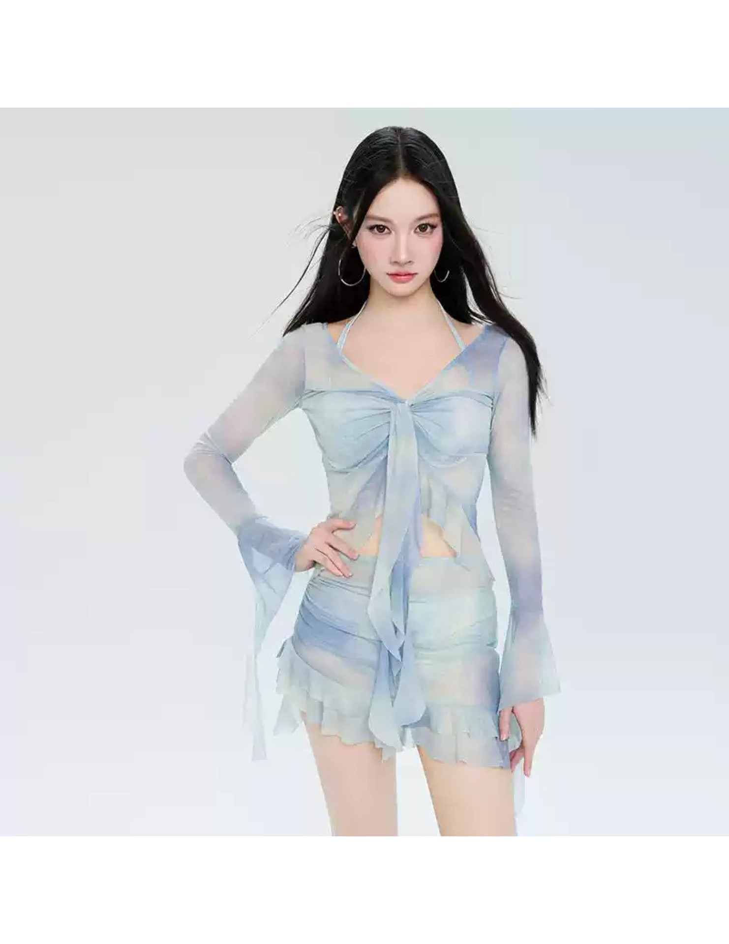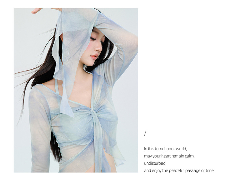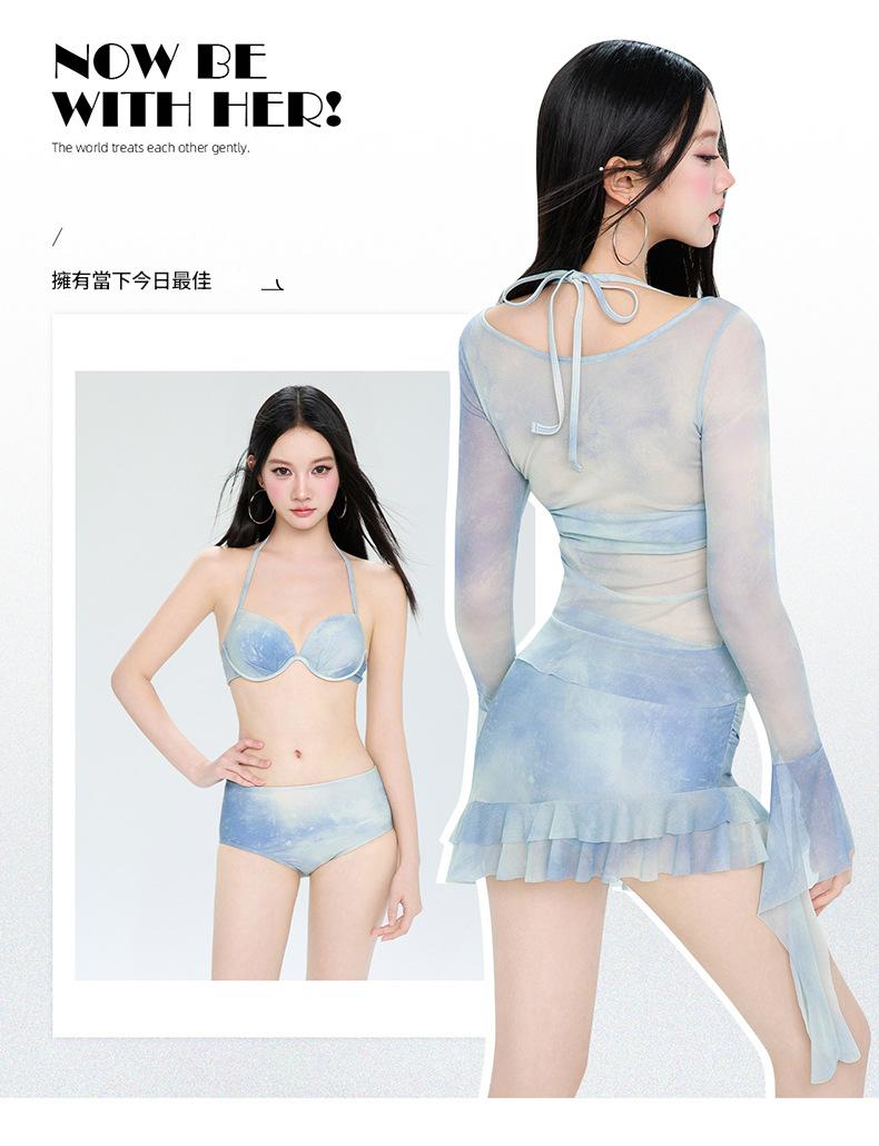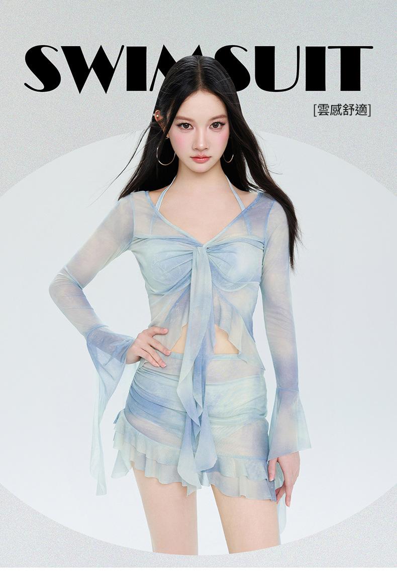 HSPN64061100004 分體泳衣女2026年新款長袖顯瘦遮肚泡溫泉高級感裙式比基尼四件套
