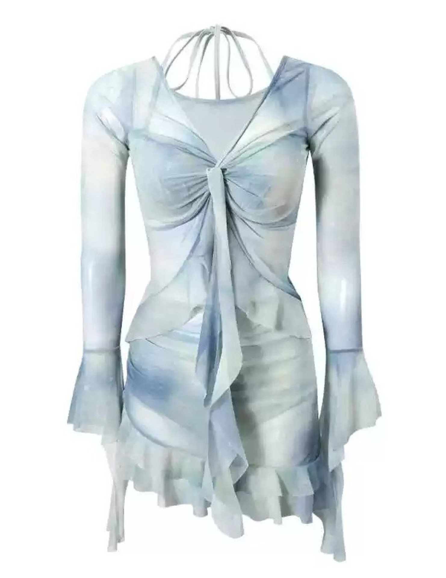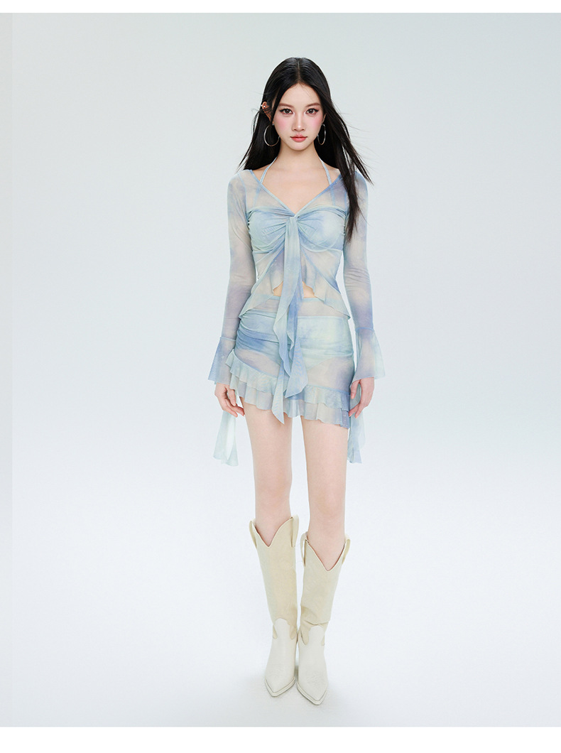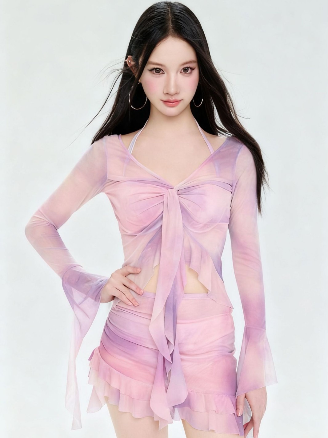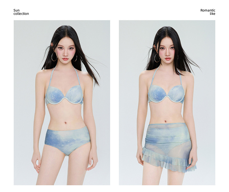 HSPN64061100004 分體泳衣女2026年新款長袖顯瘦遮肚泡溫泉高級感裙式比基尼四件套