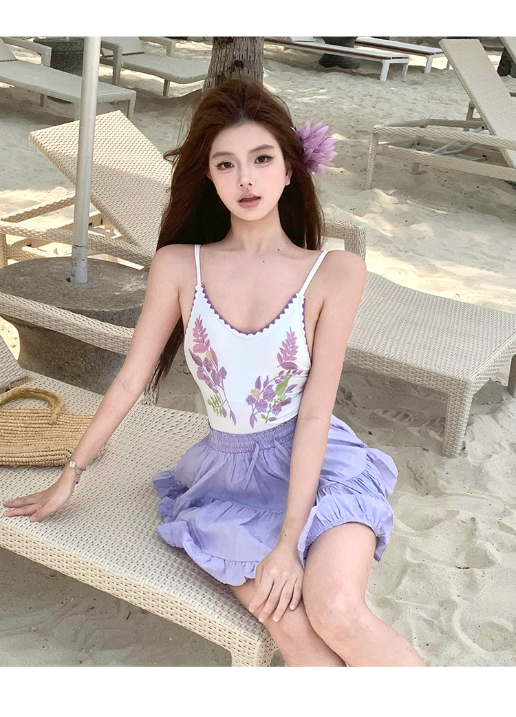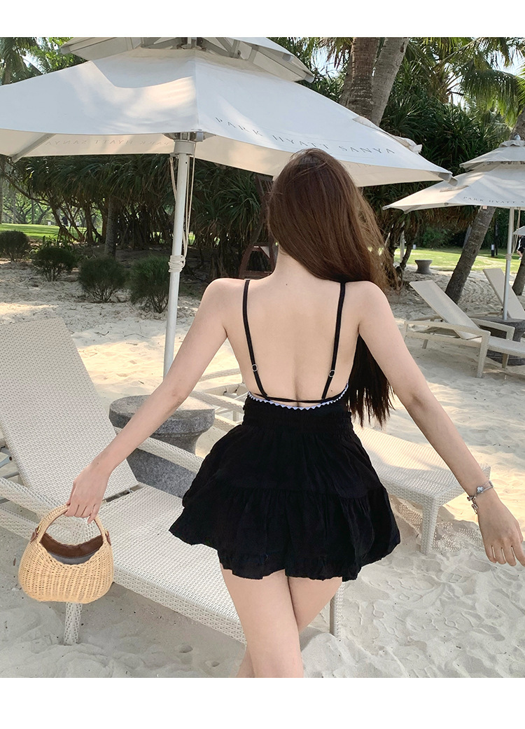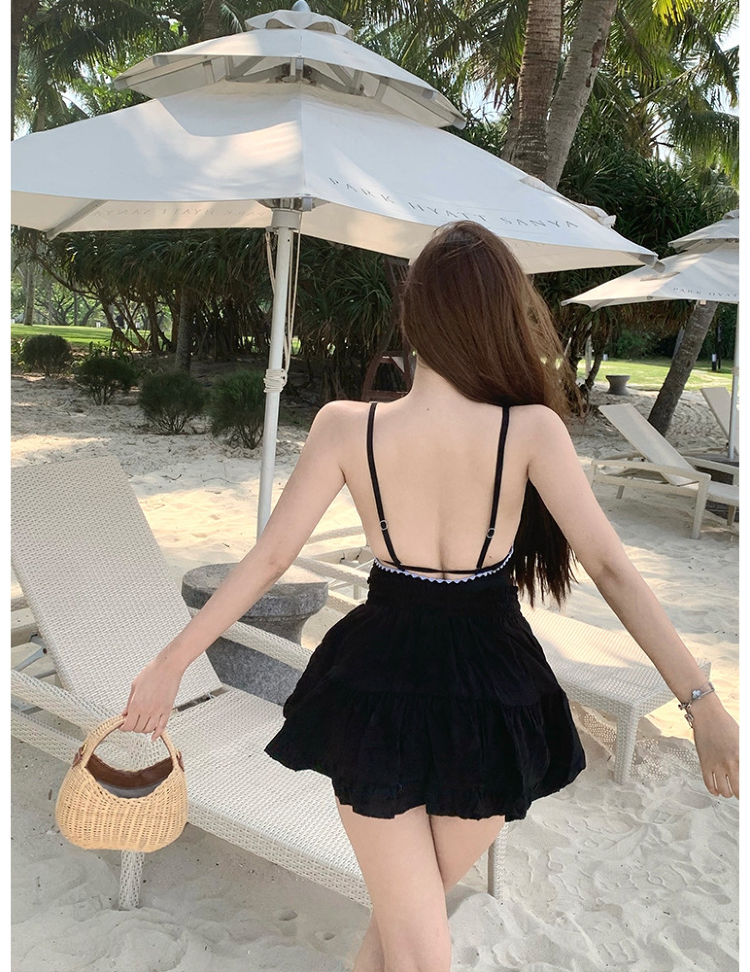 HSPN647100002 葡萄酒莊復古法式立體刺繡高級連體度假溫泉泳衣