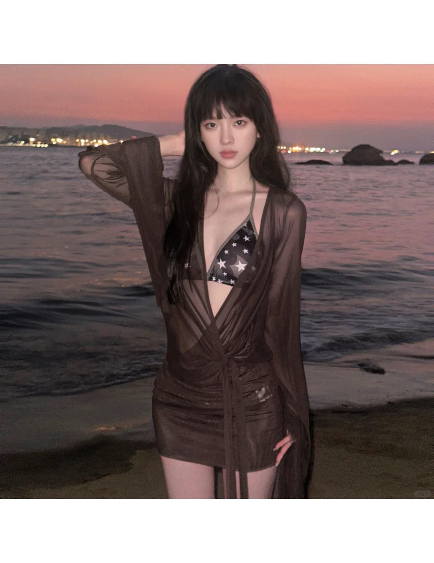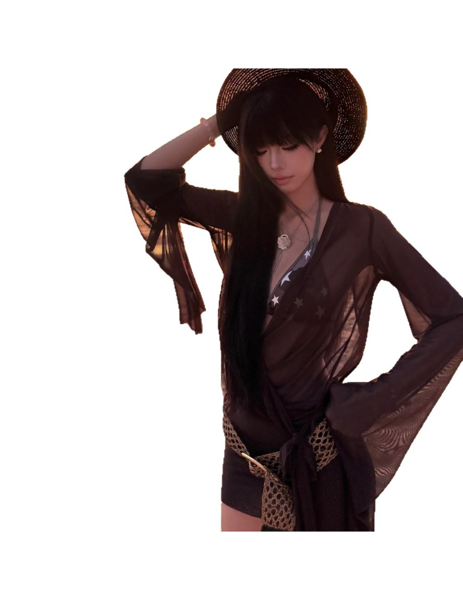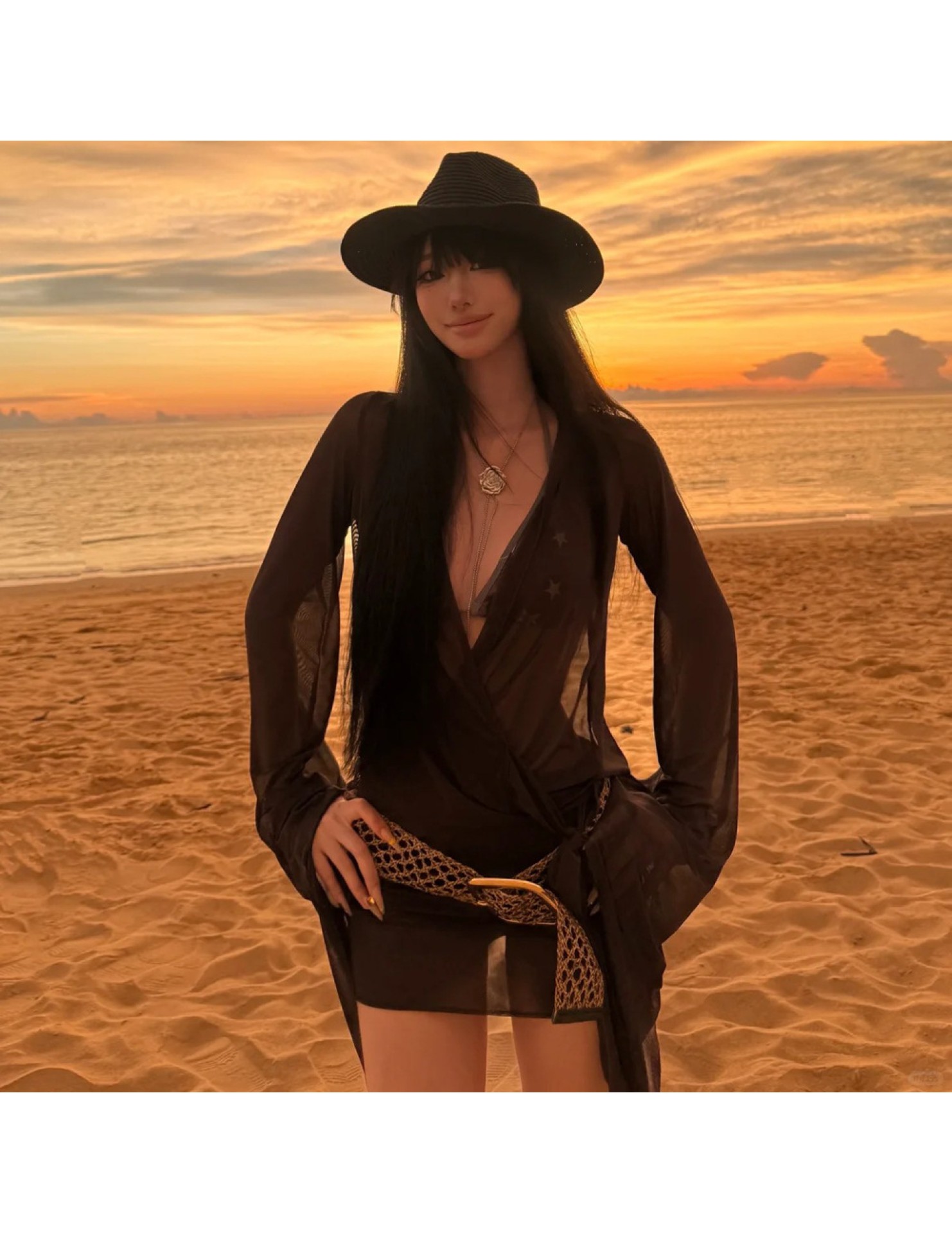 Comes with long-sleeve mesh cover-up – see-through allure, a must-have for spicy girls.