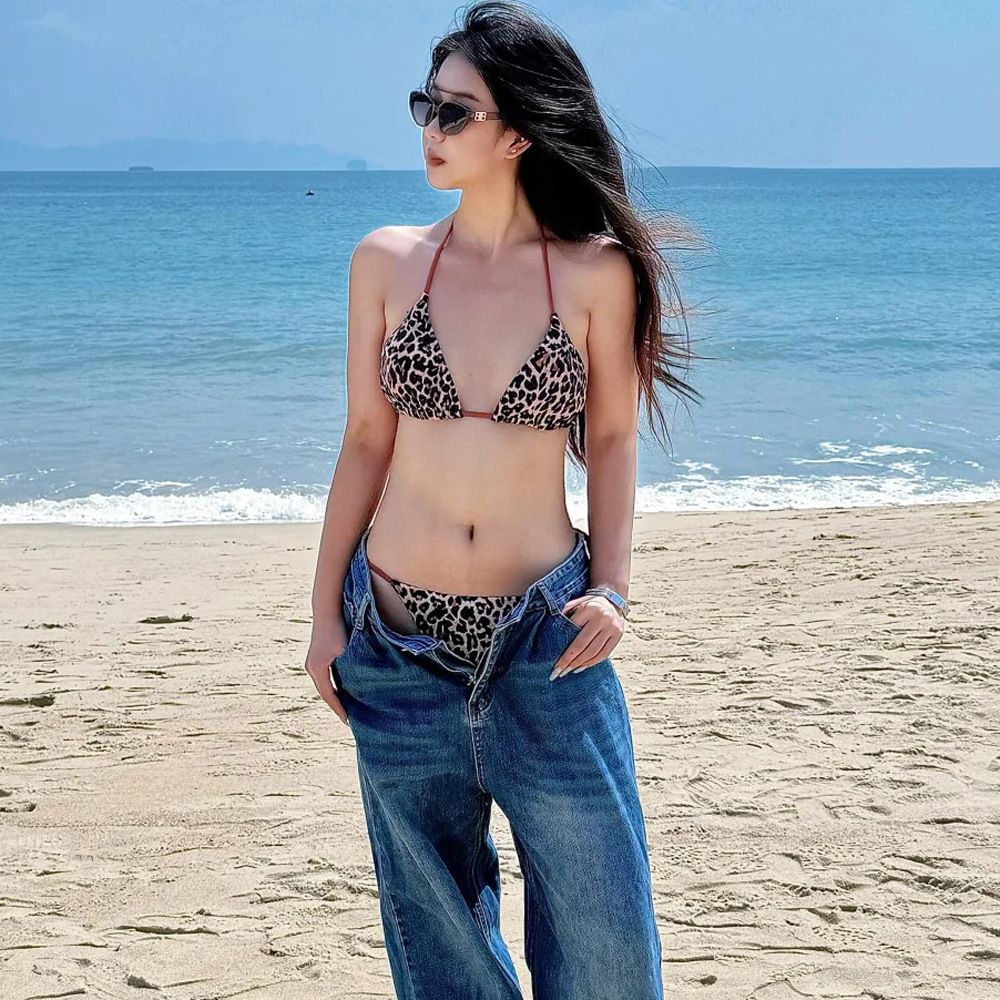 咖色豹紋野性復古,修飾身形,海邊度假必備。