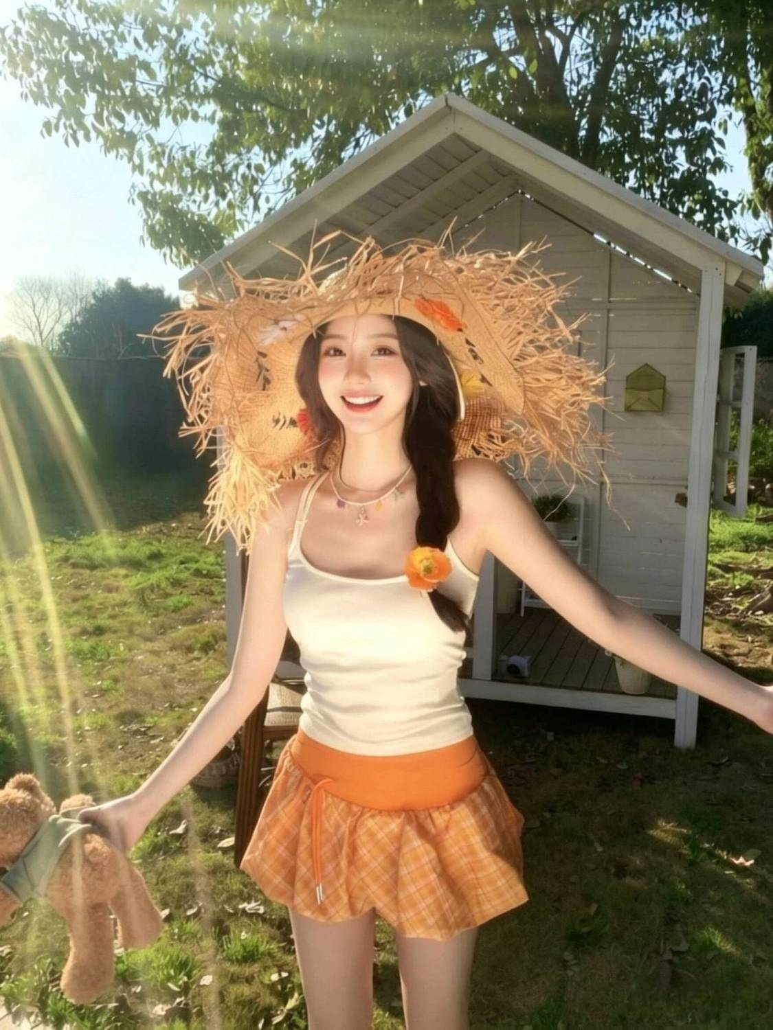 HSPN6415100005 泳衣女性感分體裙式比基尼三件套小胸聚攏辣妹度假風海邊溫泉泳裝