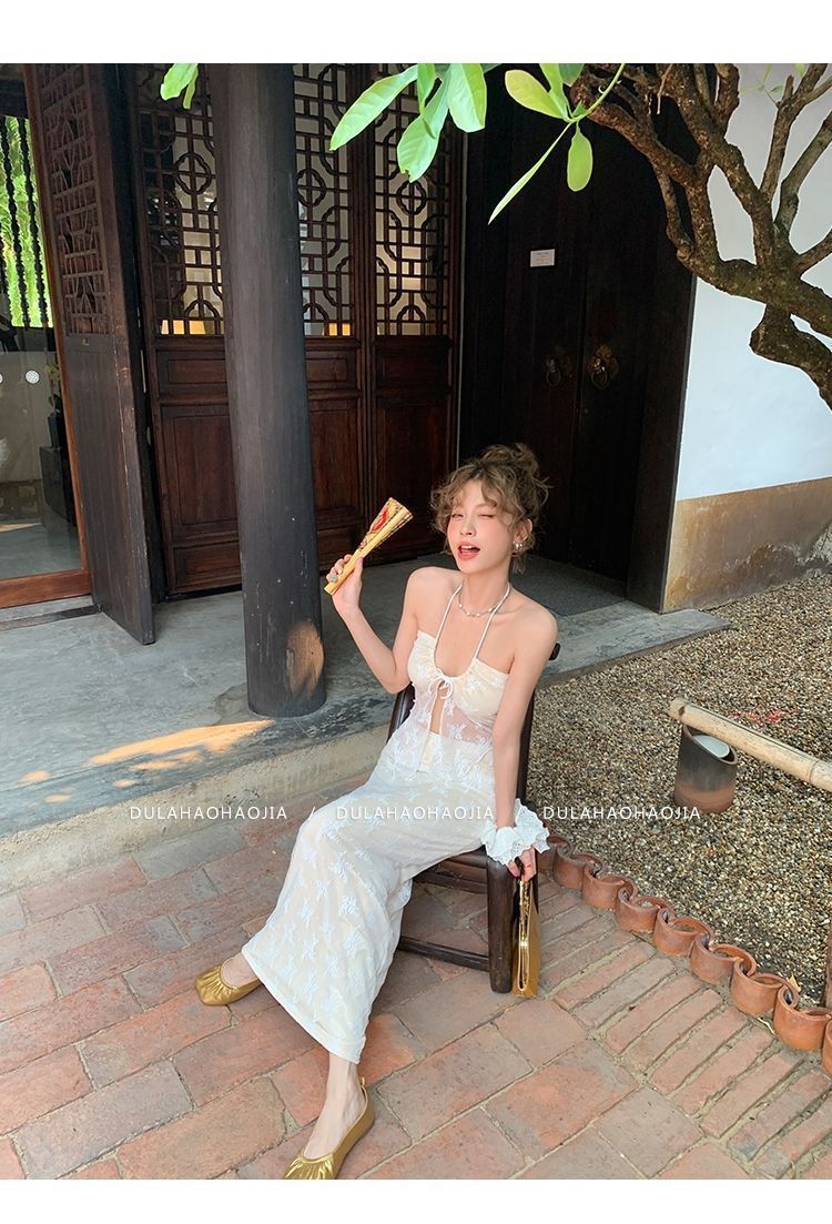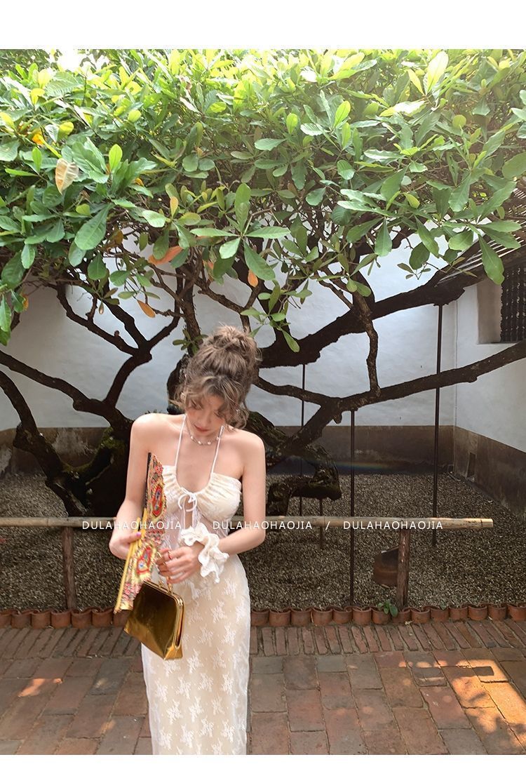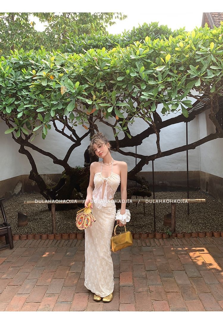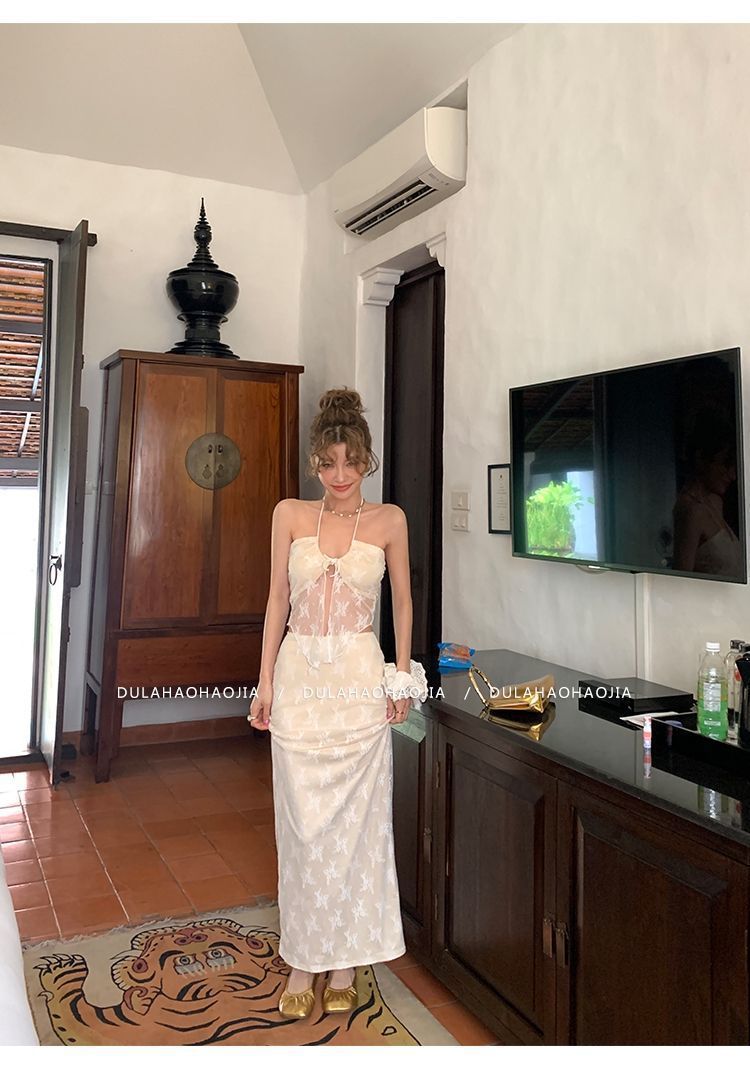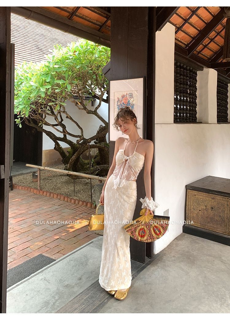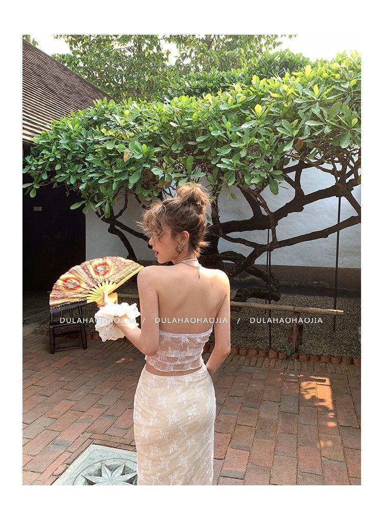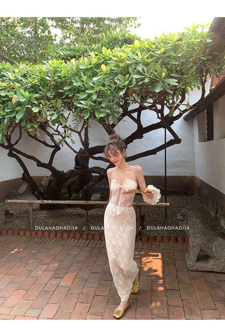 HSPN6415100002 新款海島度假風辣妹蕾絲抹胸比基尼女夏性感包臀沙灘裙三件套