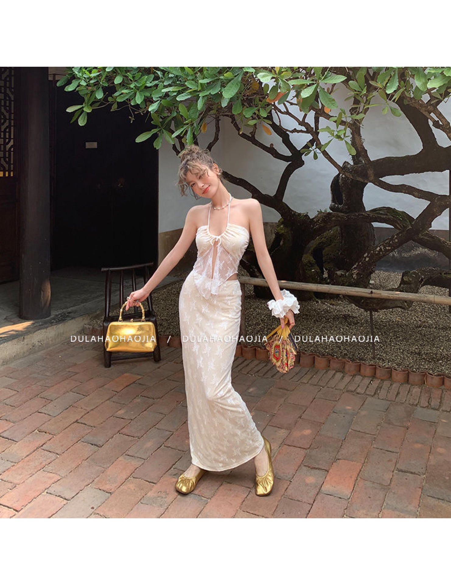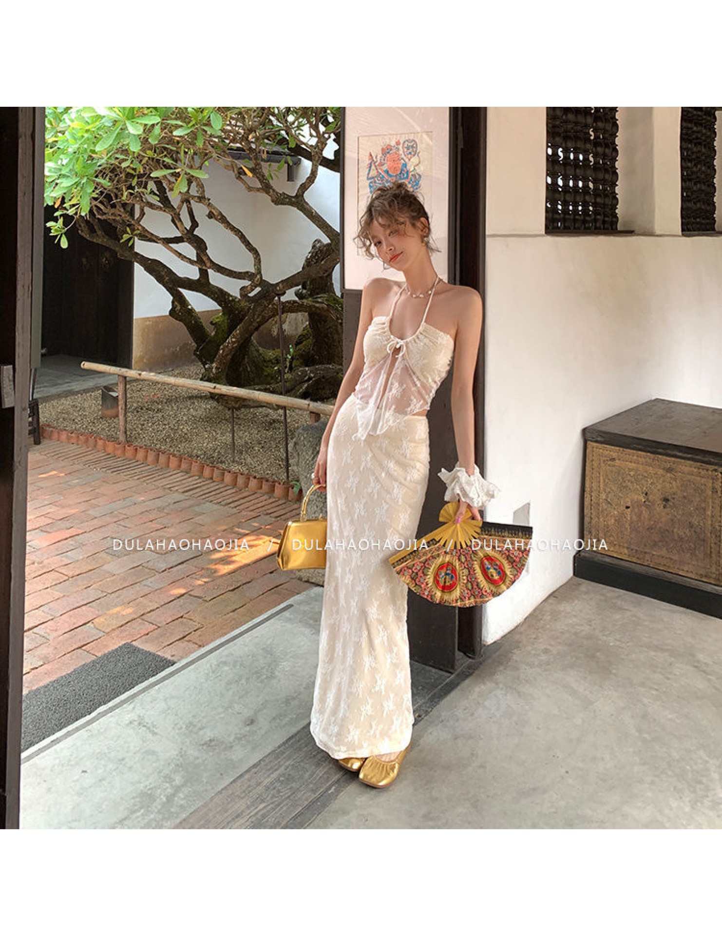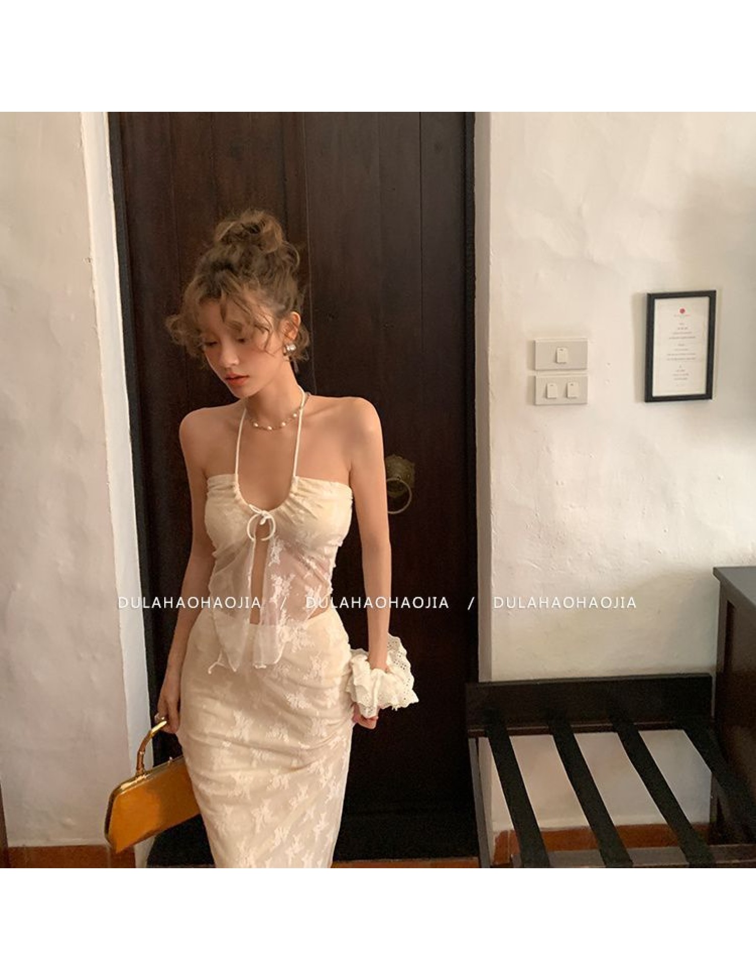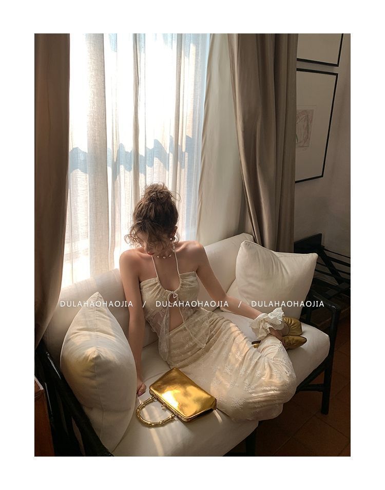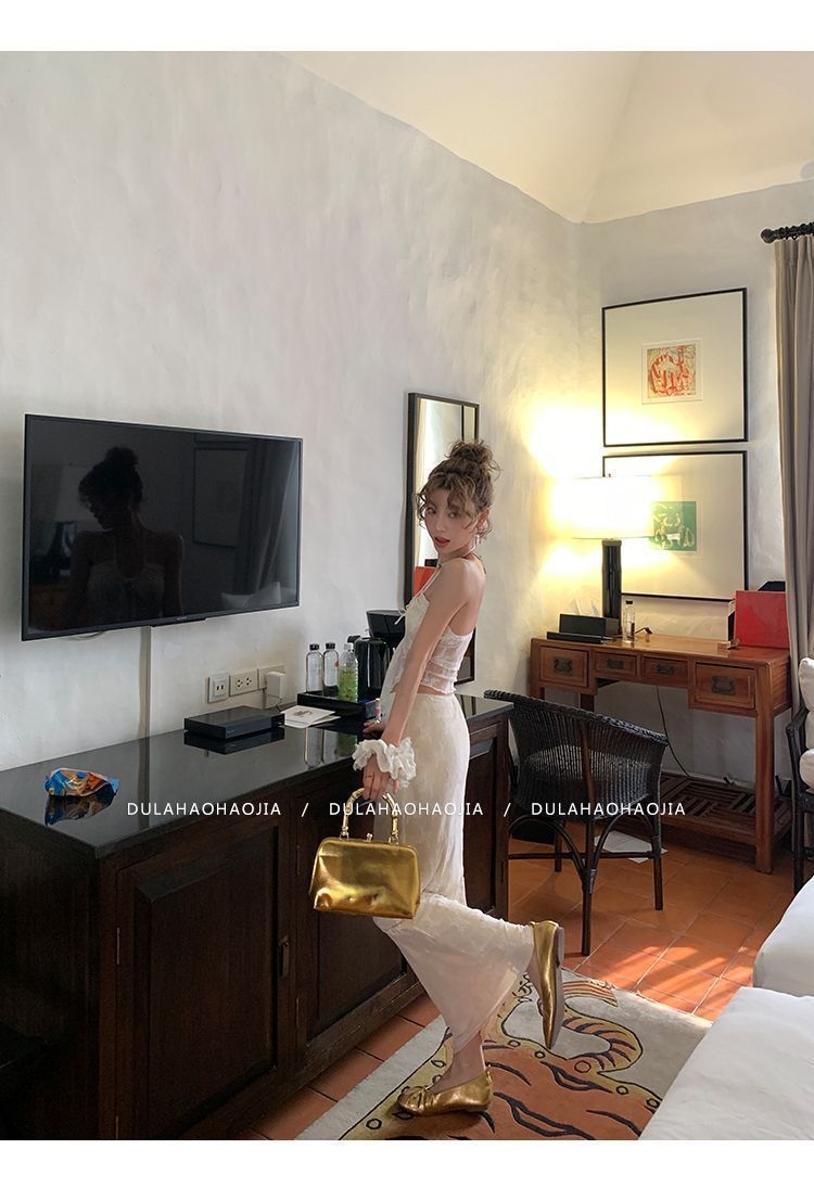 HSPN6415100002 新款海島度假風辣妹蕾絲抹胸比基尼女夏性感包臀沙灘裙三件套
