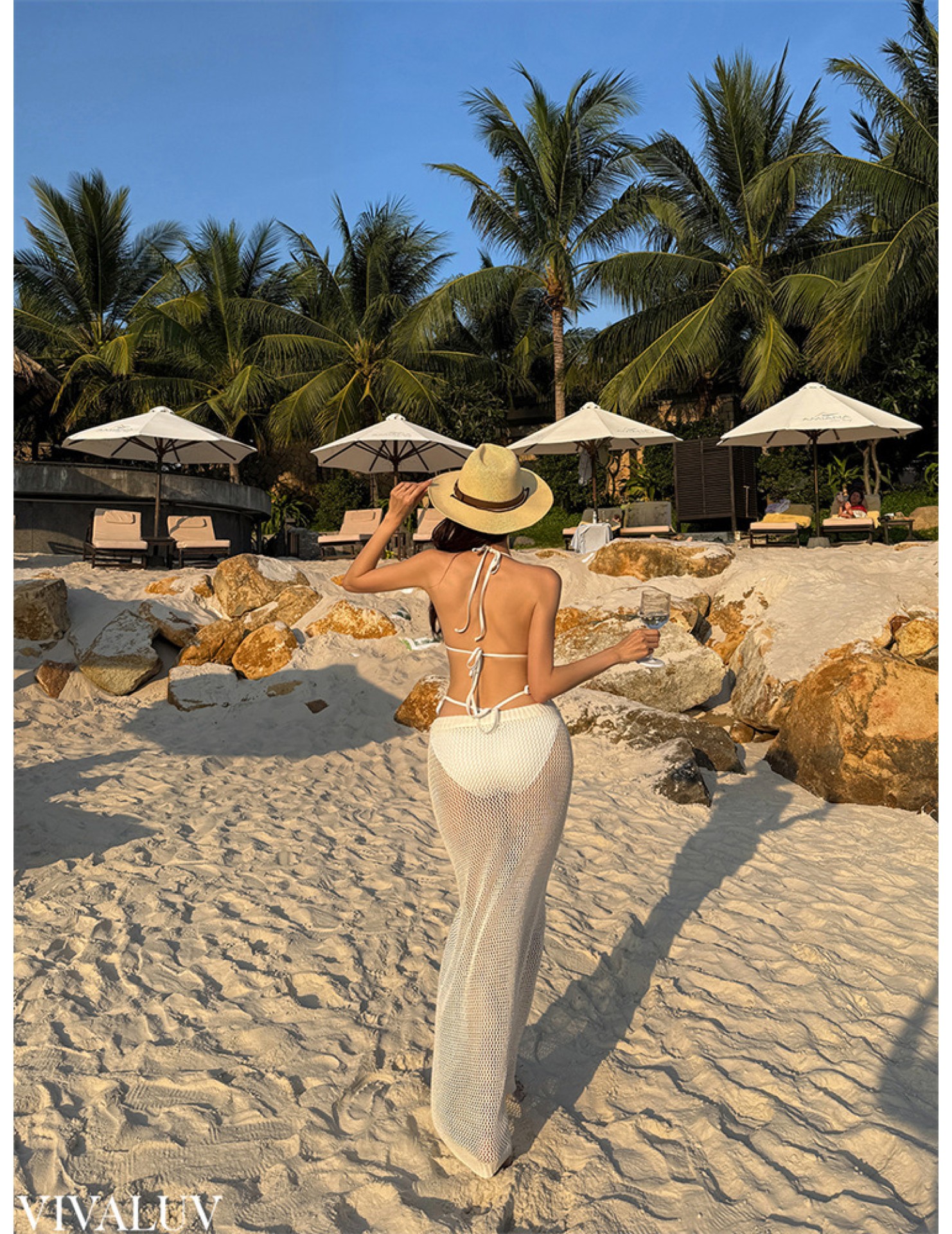 Long mesh skirt three-piece set, see-through allure, a must-have for spicy girls.