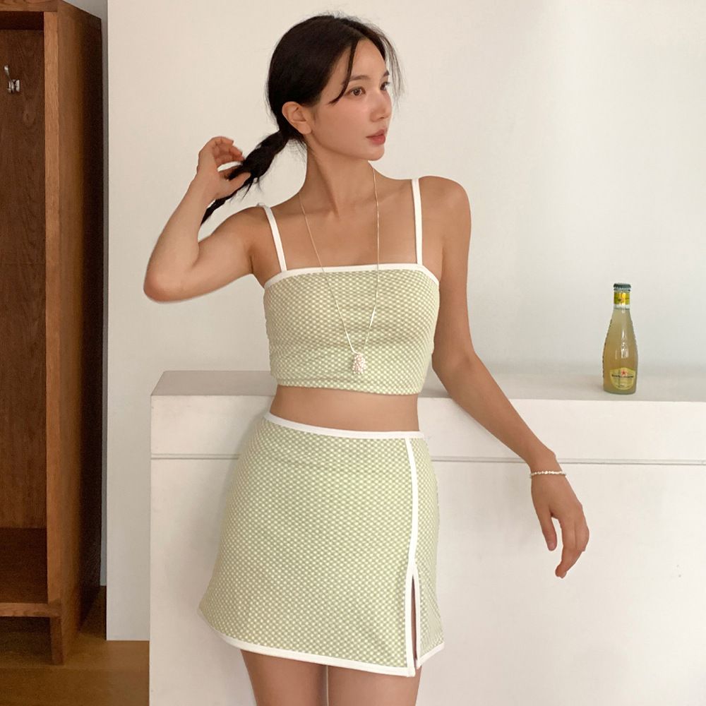 2026 Korean ins simple two-piece skirt-style swimsuit set, premium look for young ladies.