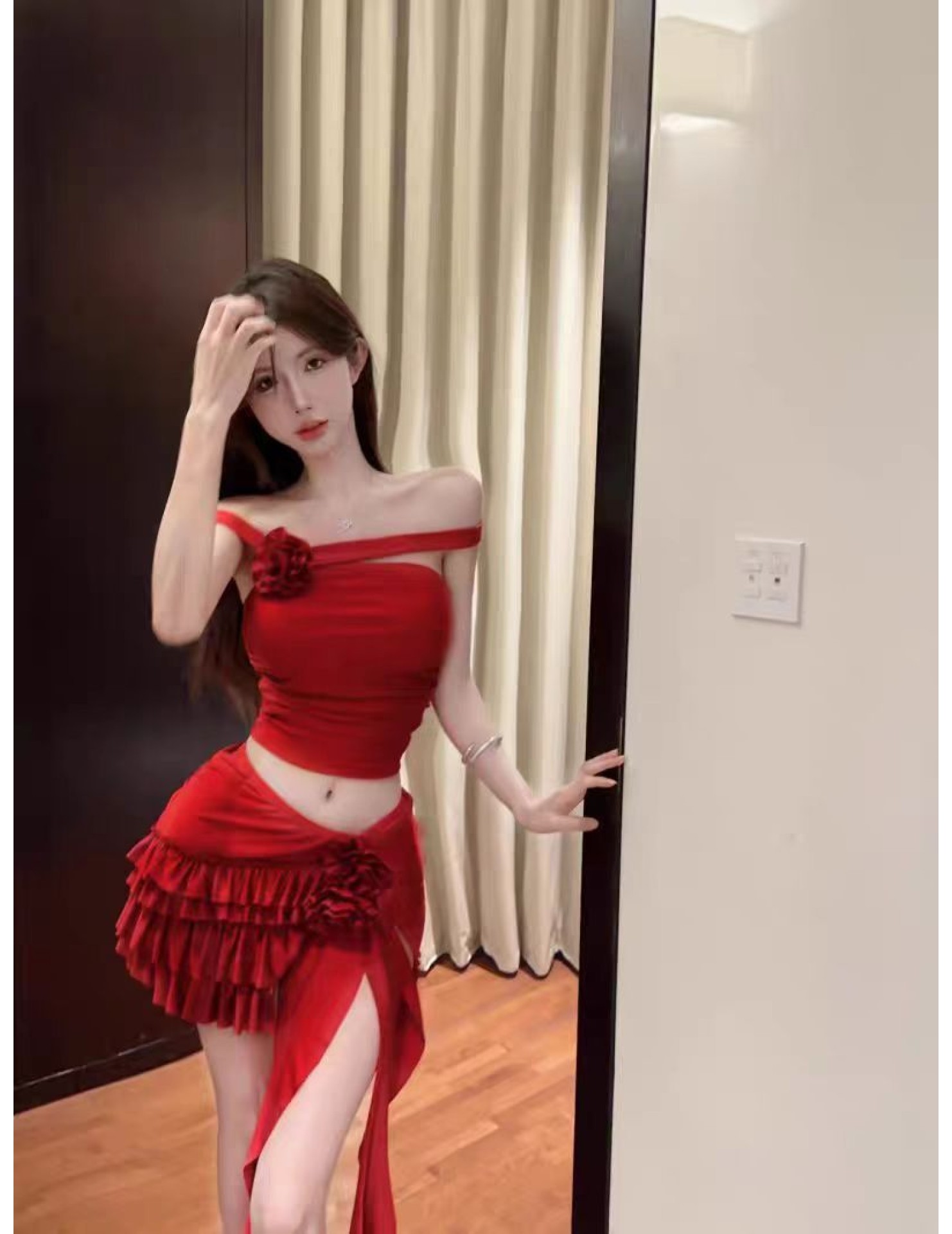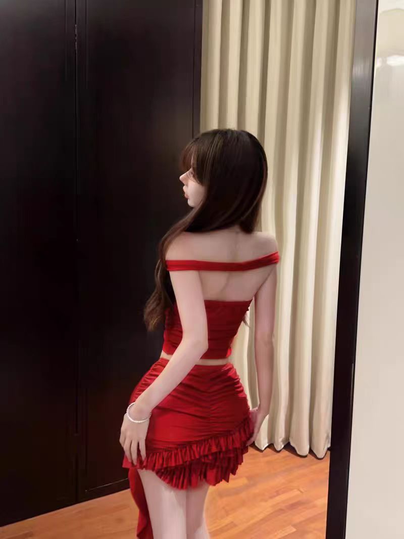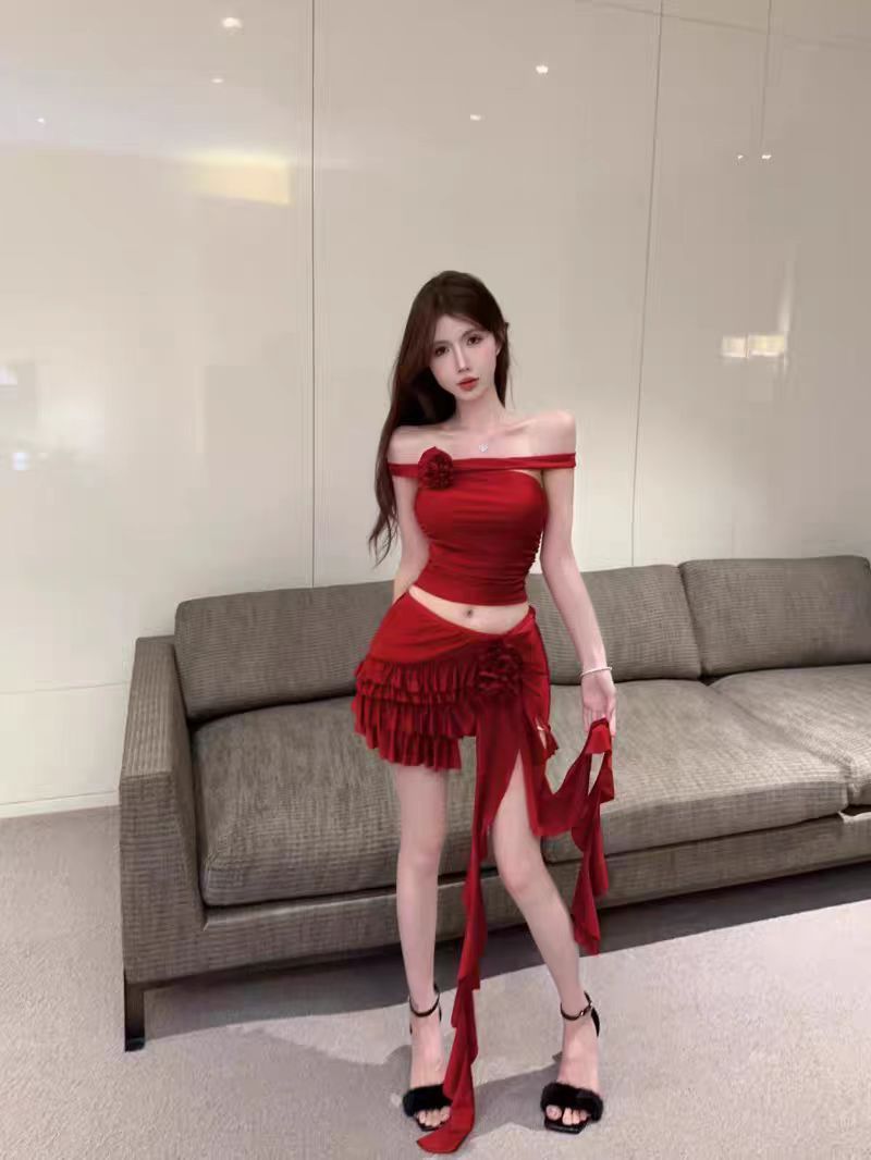 2026 spring new fashion sexy pure sweet spicy style, elegant fit floral top bodycon skirt swimsuit.