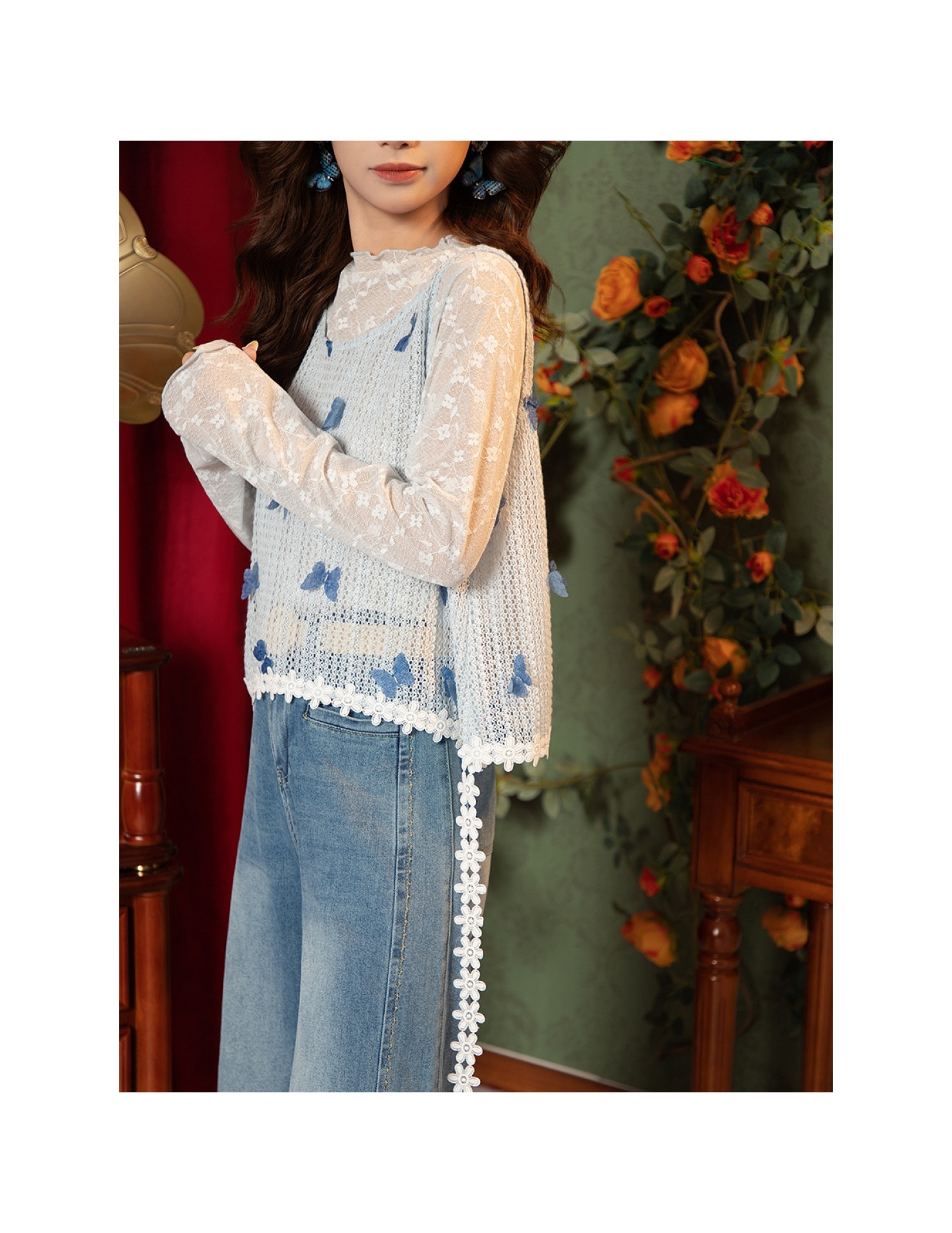 FCTP6416A100001 真兩件無袖馬甲女春夏季鏤空上衣背心