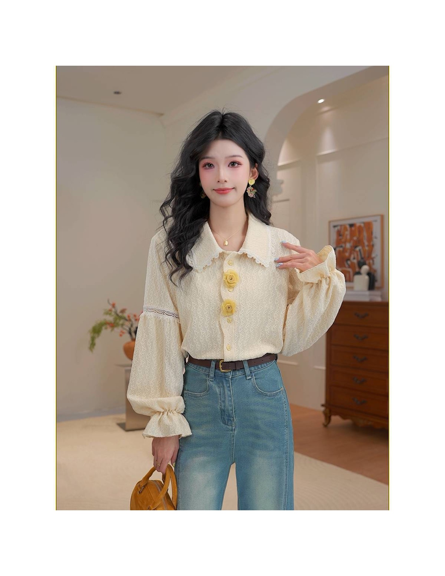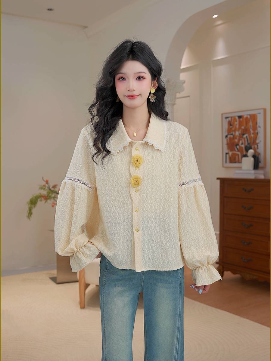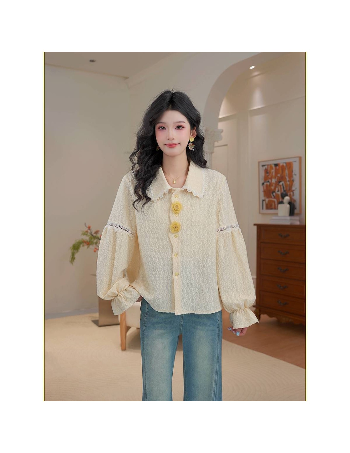 FCTP6416A100004 立體花朵長袖襯衣女春季顯瘦襯衫