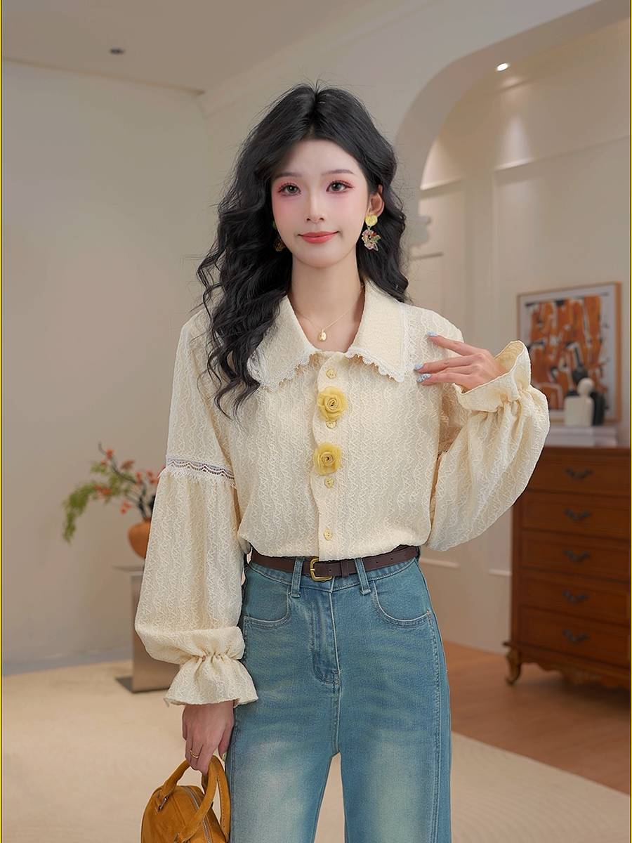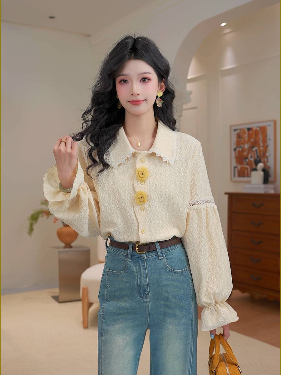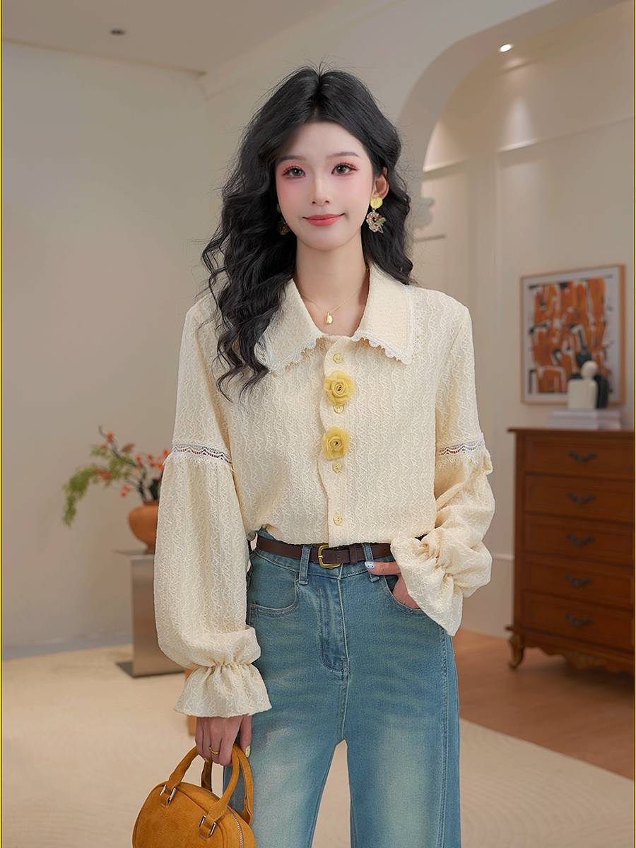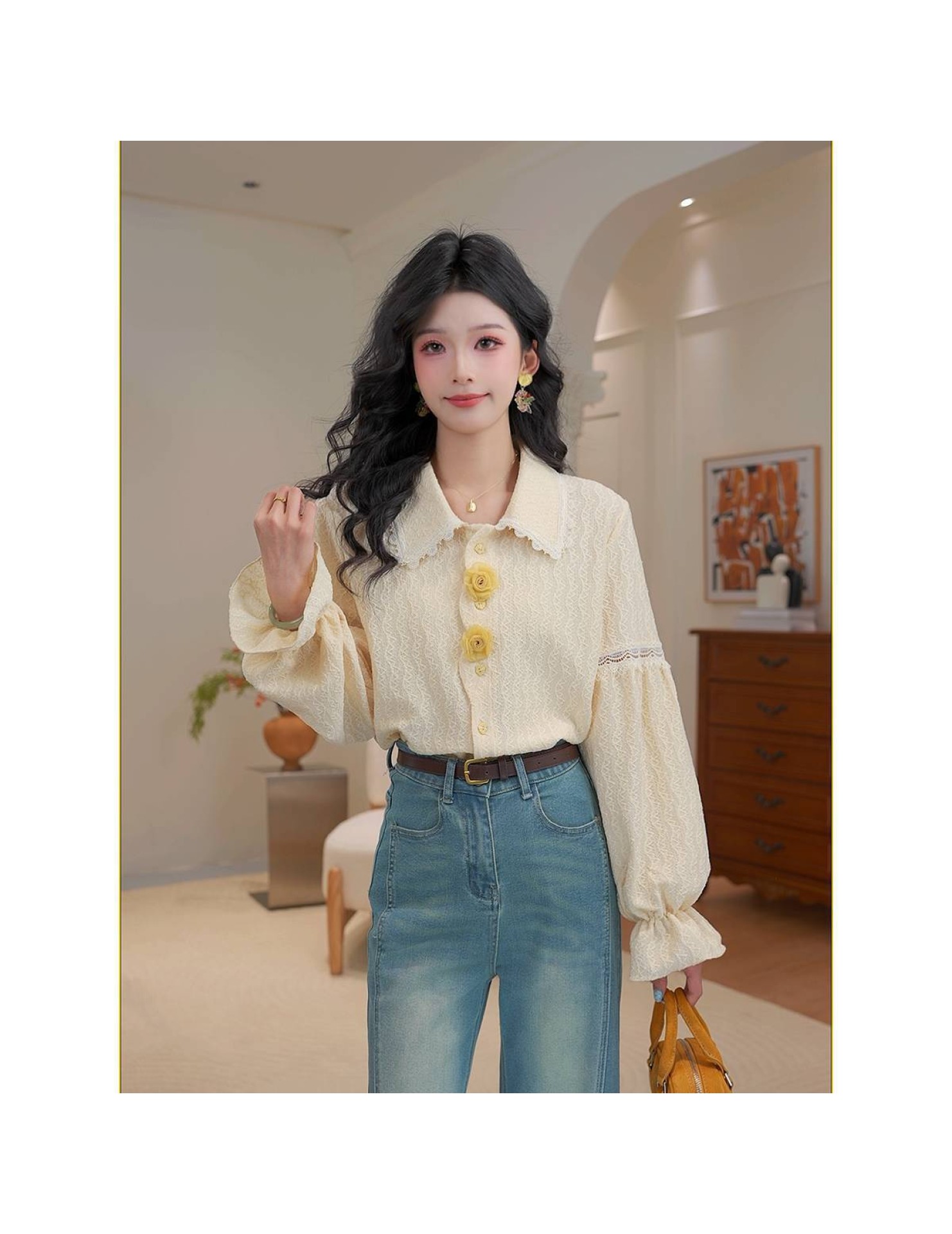 FCTP6416A100004 立體花朵長袖襯衣女春季顯瘦襯衫