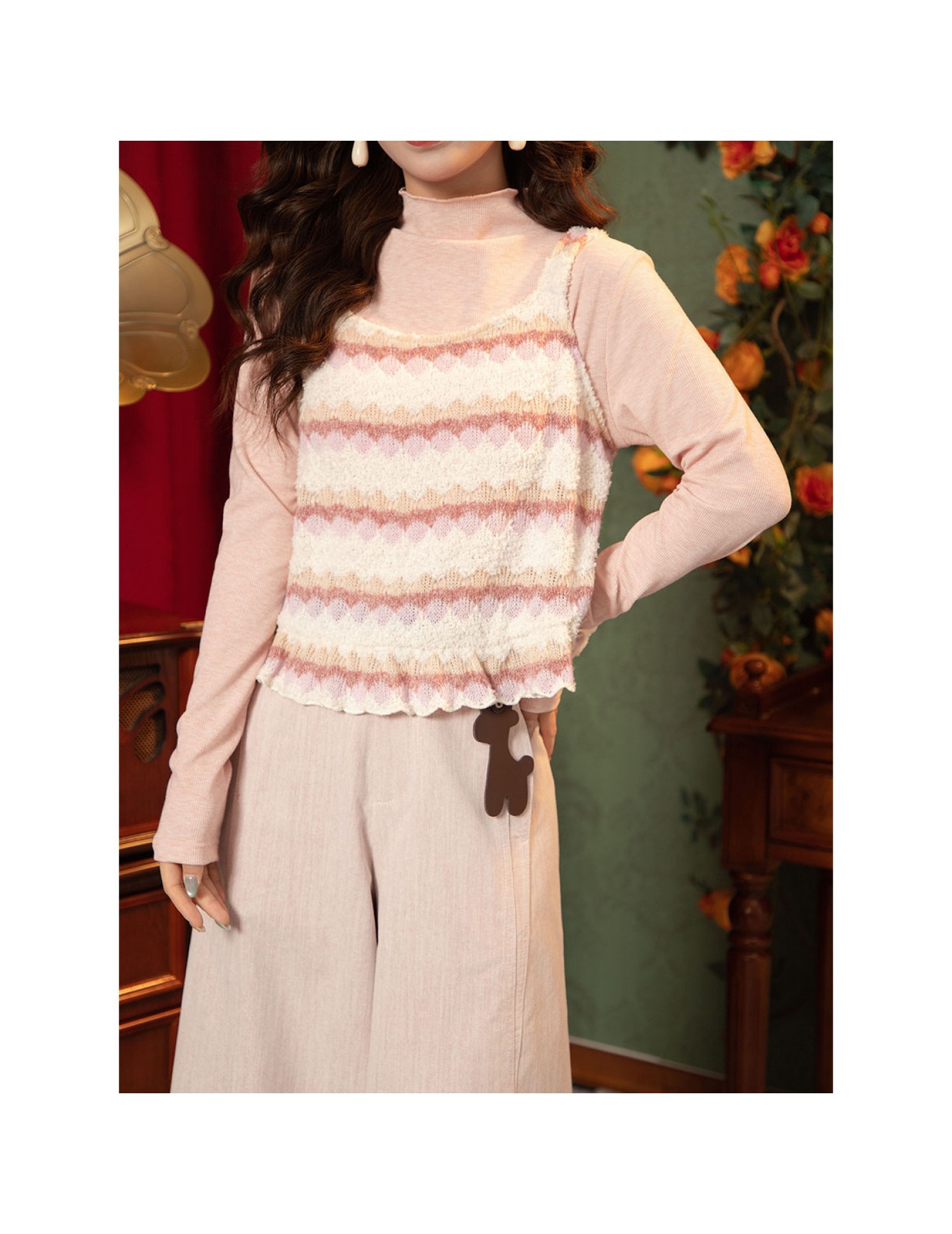 FCTP6416A100005 半高領長袖真兩件上衣早春疊穿打底衫