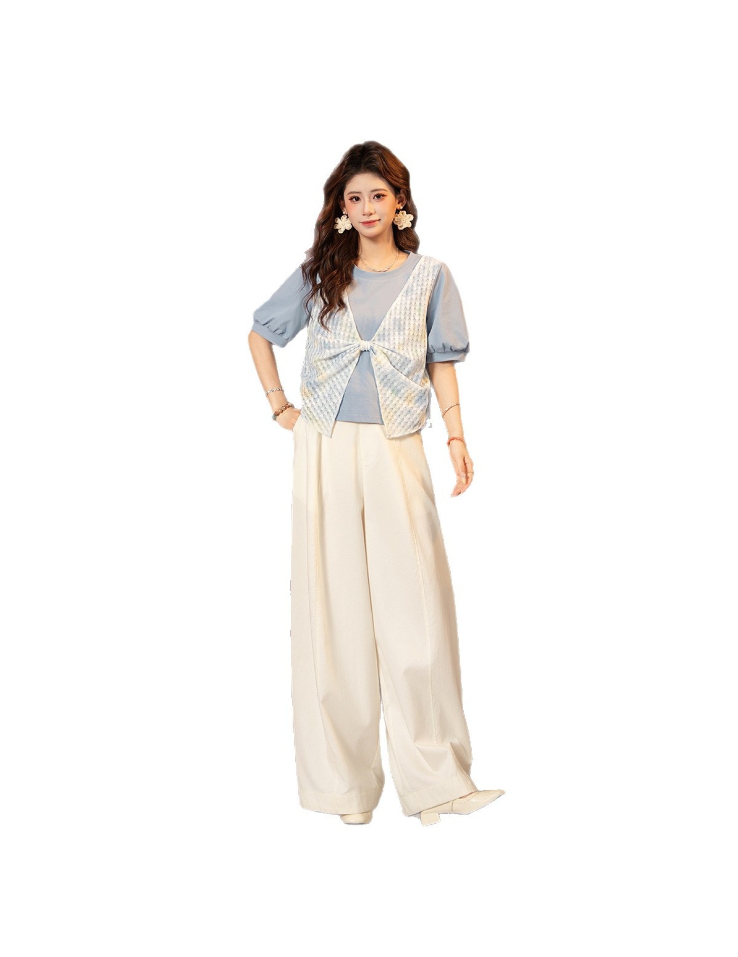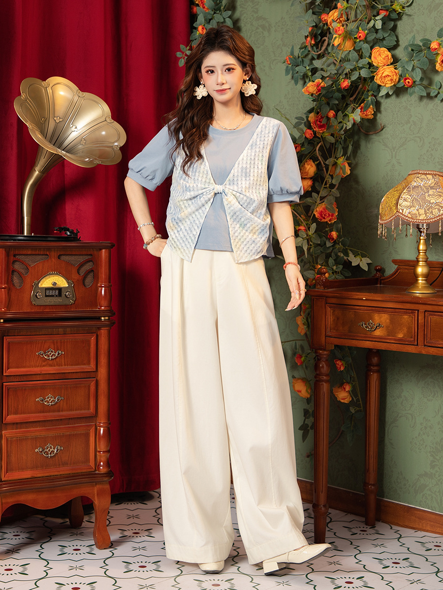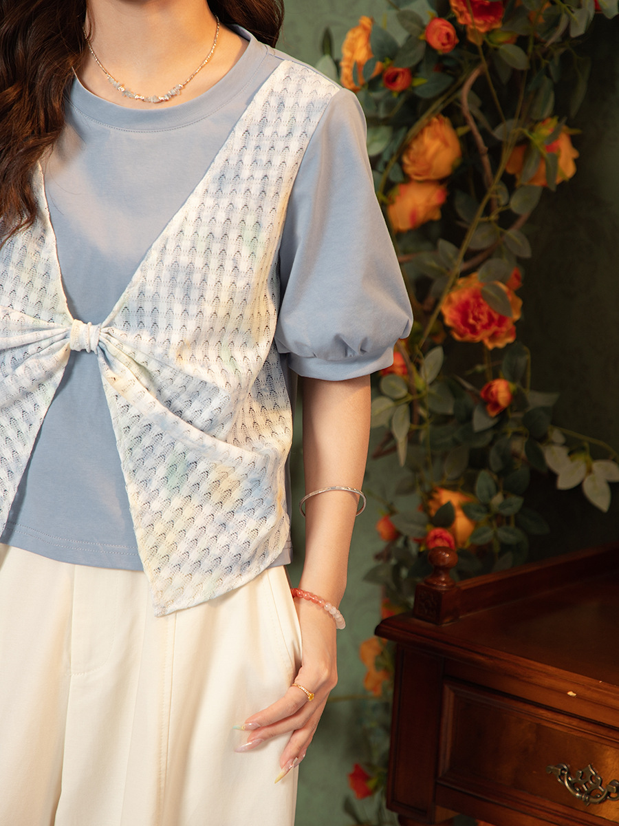 FCTP6416A100010 假兩件蝴蝶結上衣女夏季設計感短袖T恤
