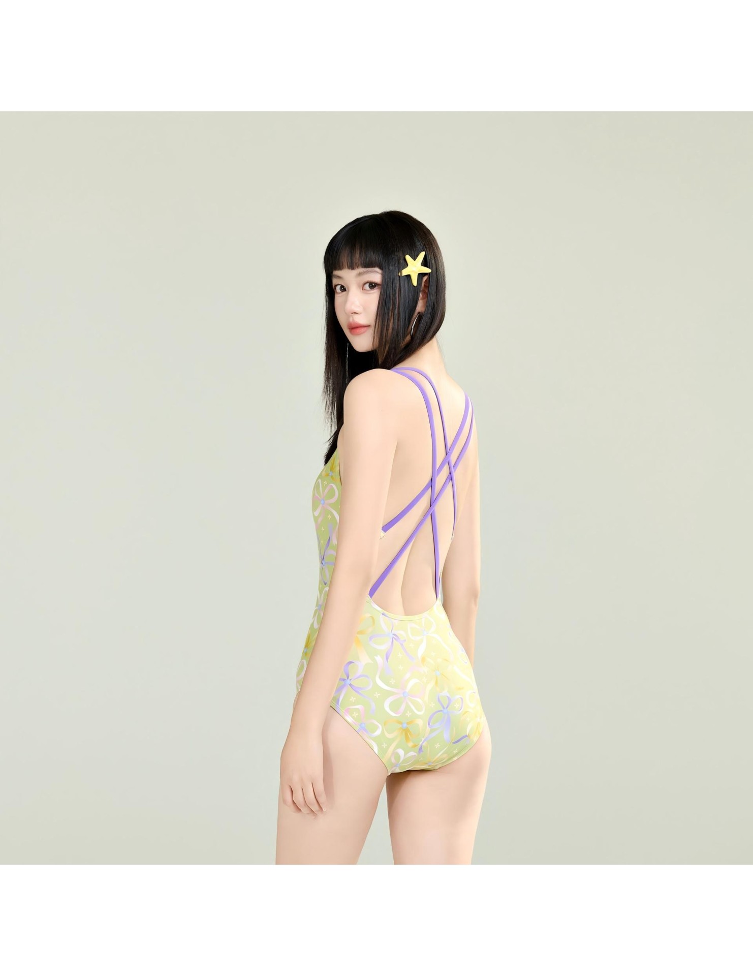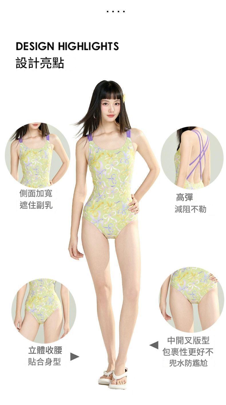 HCOM6417100002 小清新蝴蝶結泳衣女連體三角競速游泳館