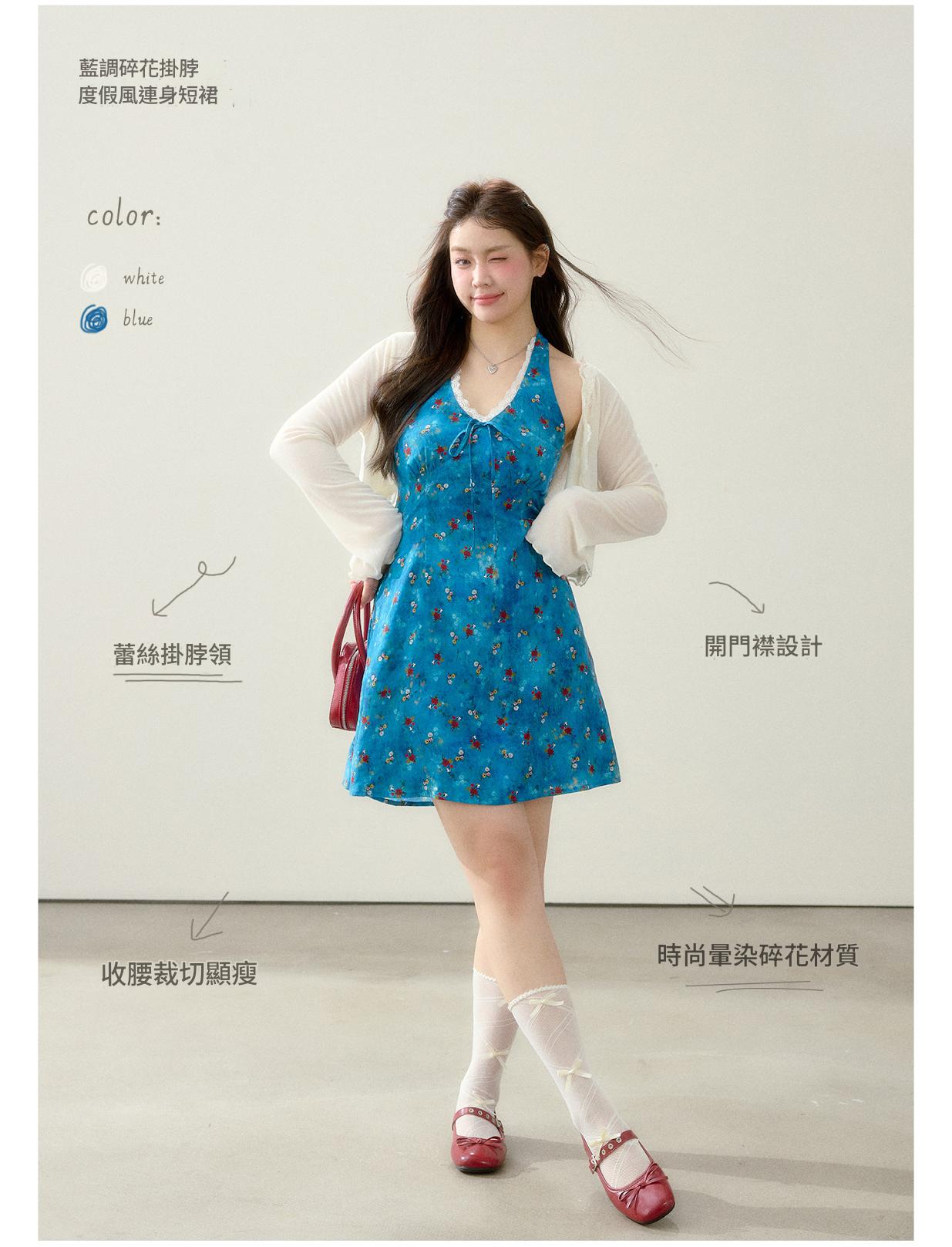 FCCB6421001 大碼顯瘦碎花洋裝海邊度假風夏日漂亮掛脖裙
