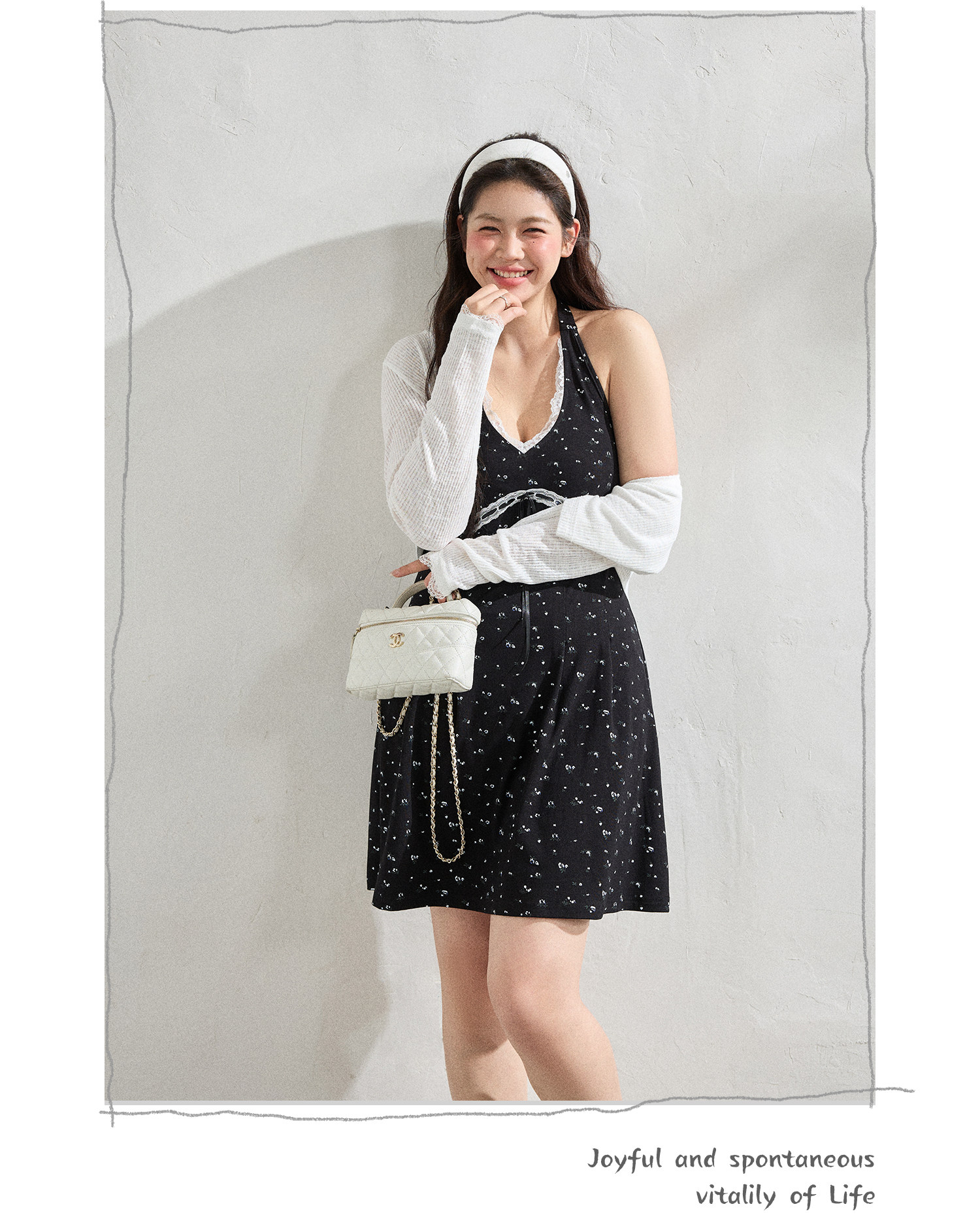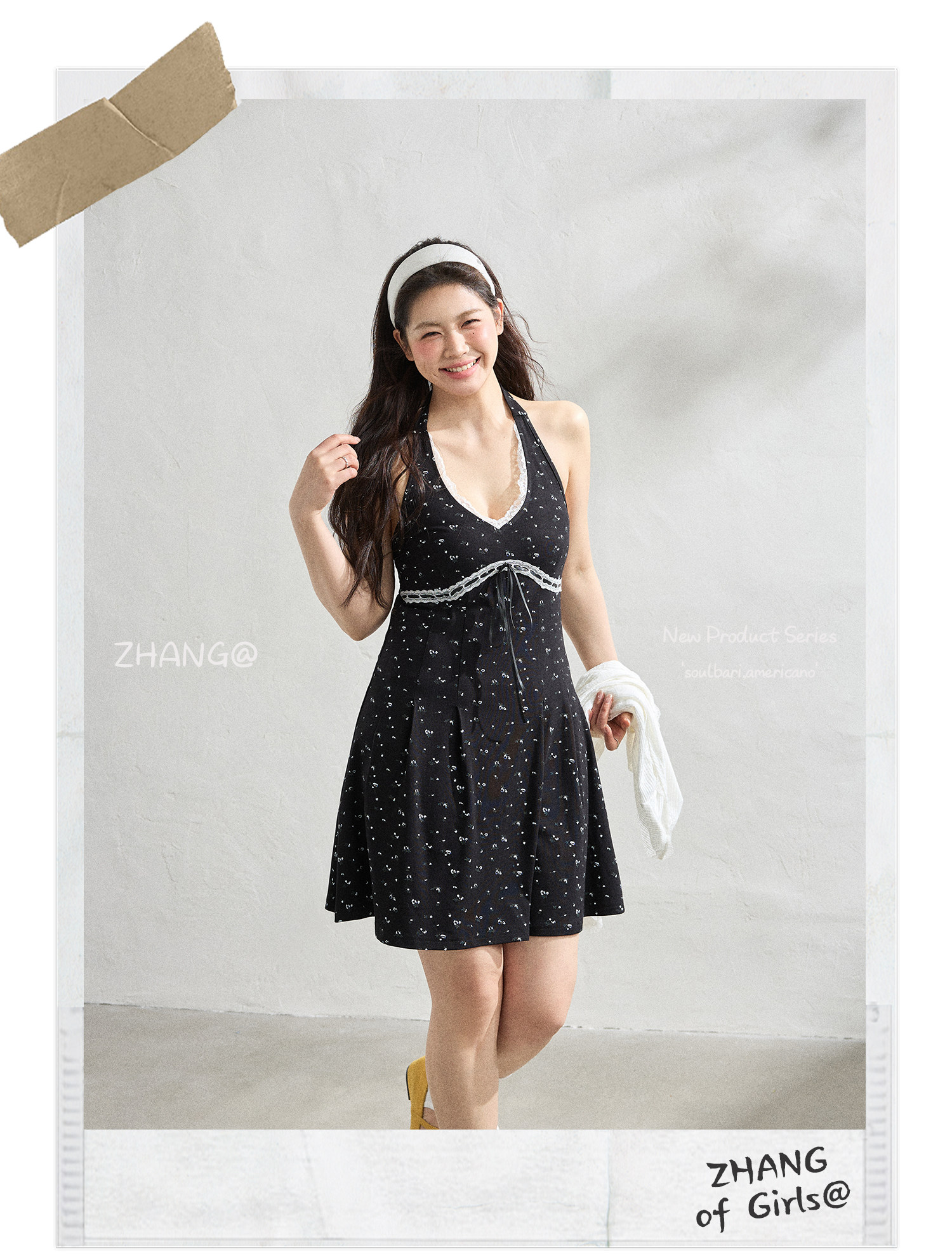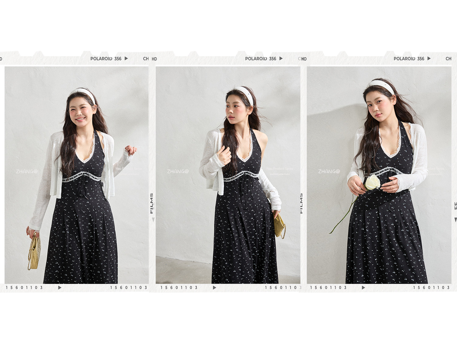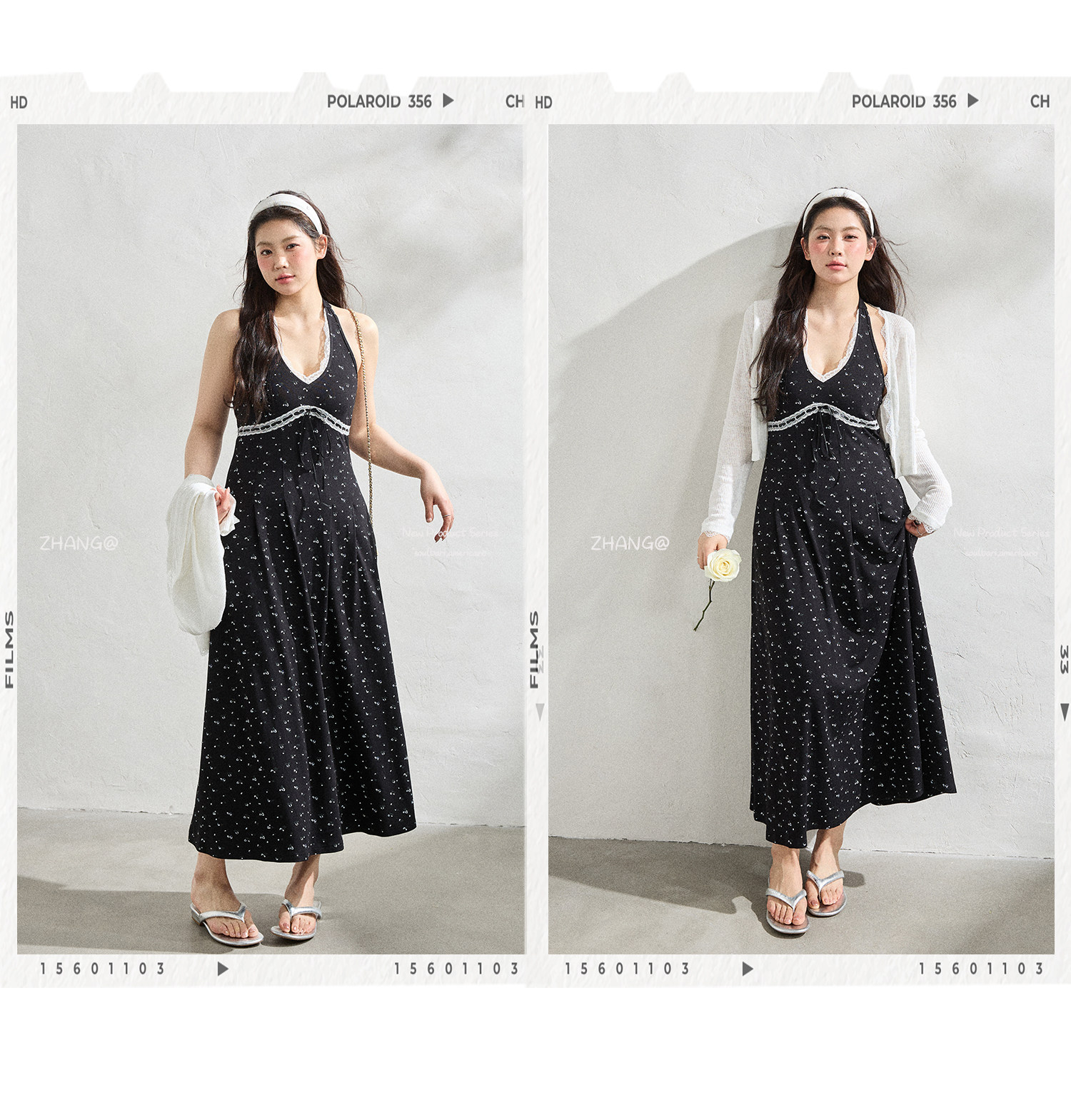 FCCB6421002 大碼法式顯瘦蕾絲花邊碎花裙掛脖連衣閨蜜裙