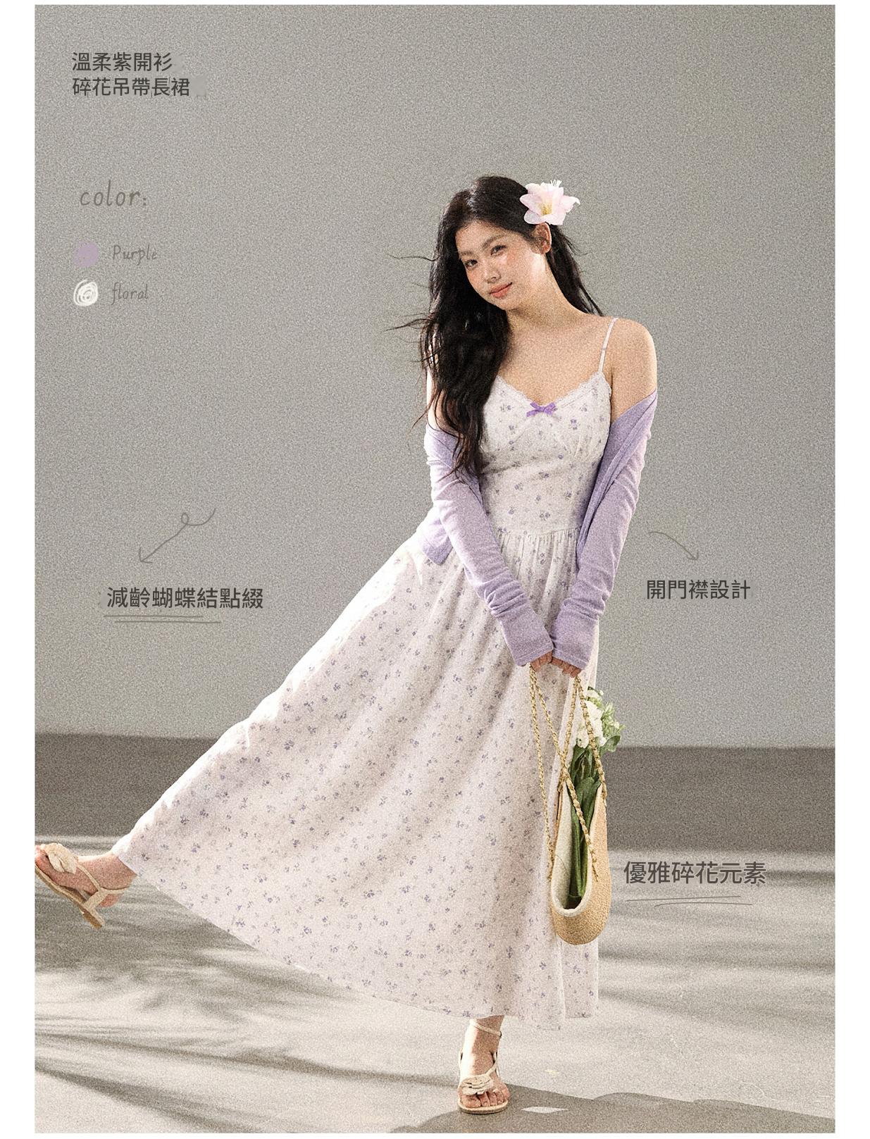 FCCB6421007 大碼韓系顯瘦碎花吊帶長裙外搭防曬針織開襟衫兩件套