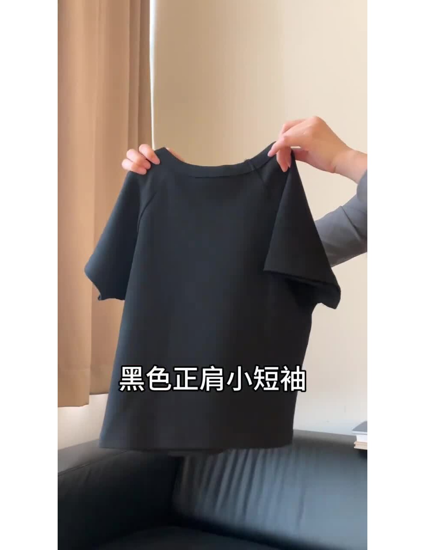 FCSE6424008 黑色短袖t卹碎花半身裙長裙兩件套裝女夏季洋氣氣質減齡