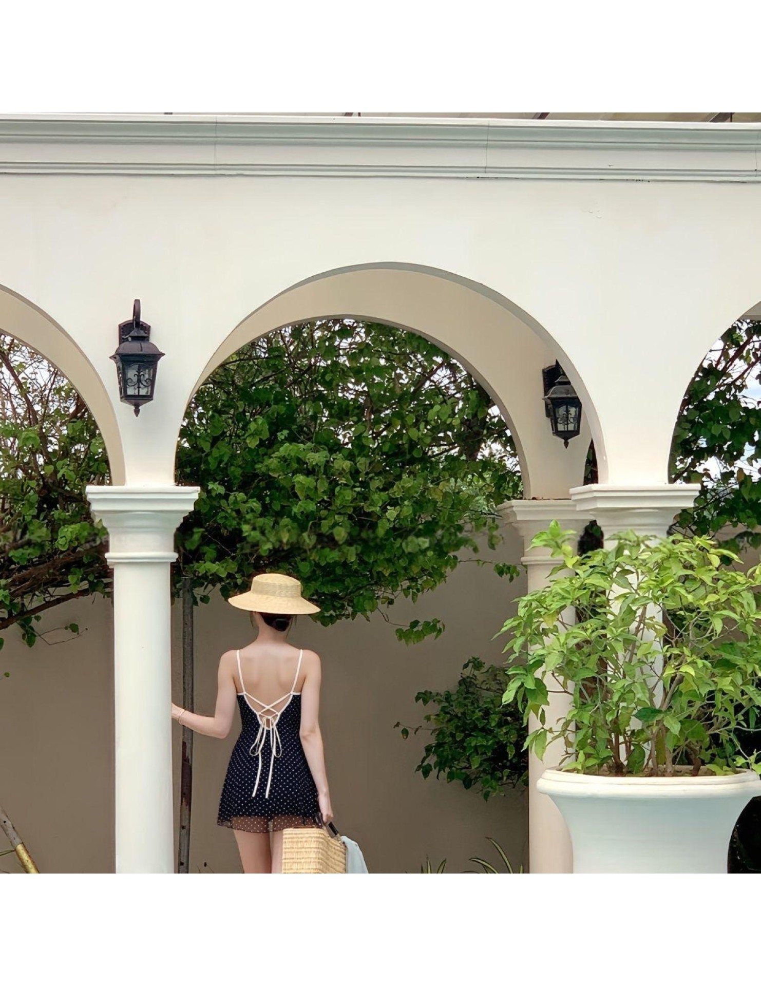 HSPN64250003 波點保守純欲風高級感連身泳衣女士小胸顯瘦遮肚裙式沙灘溫泉泳裝