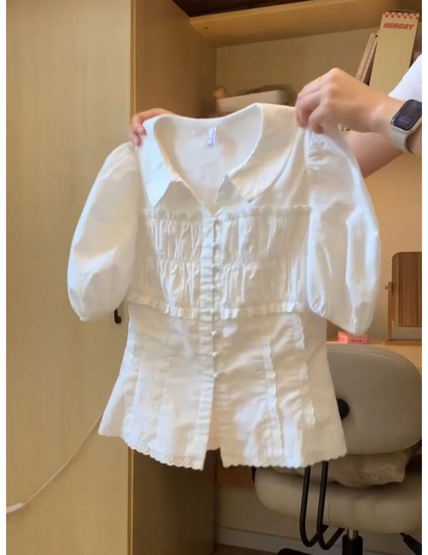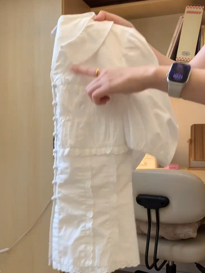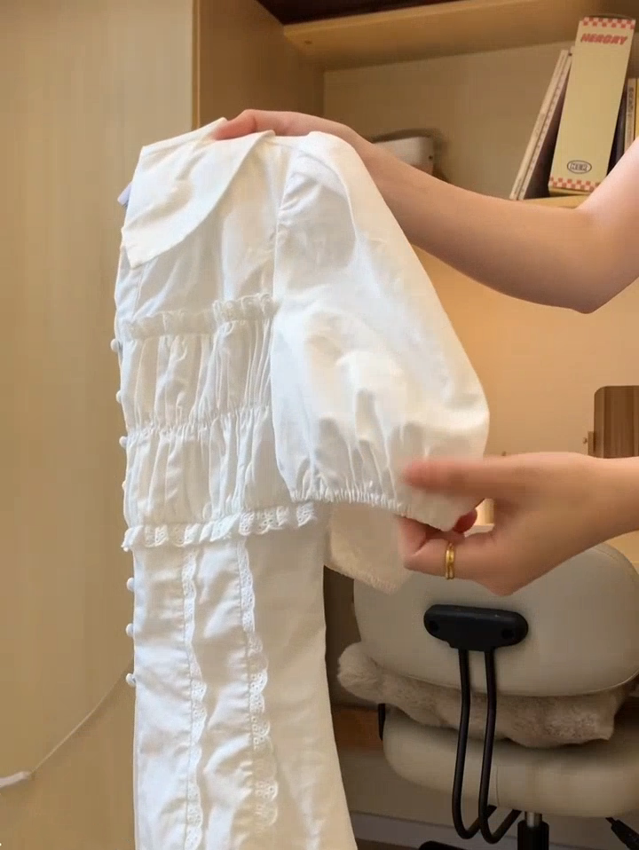 FCSE6424009 2026韓系甜美風泡泡袖襯衫波點半身裙套裝女夏季收腰顯瘦兩件套