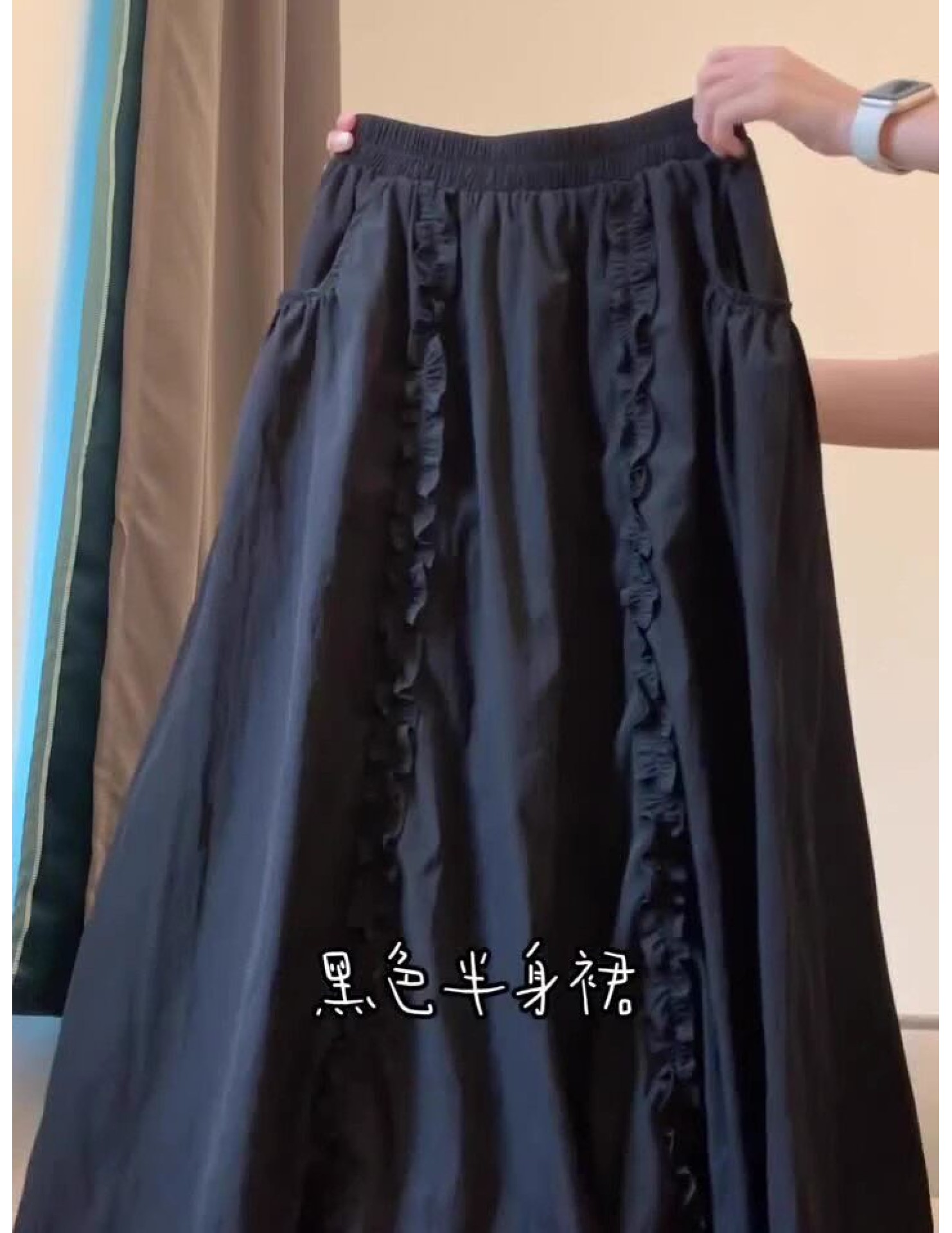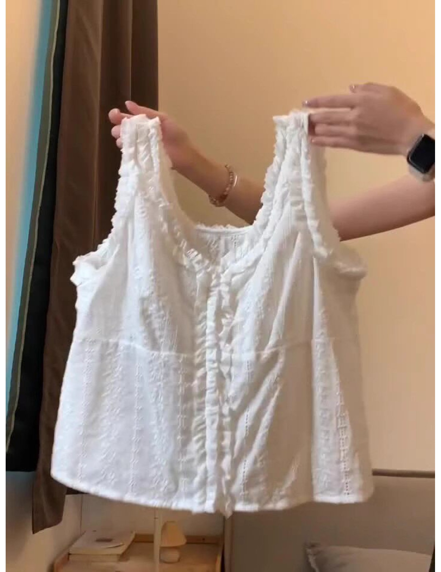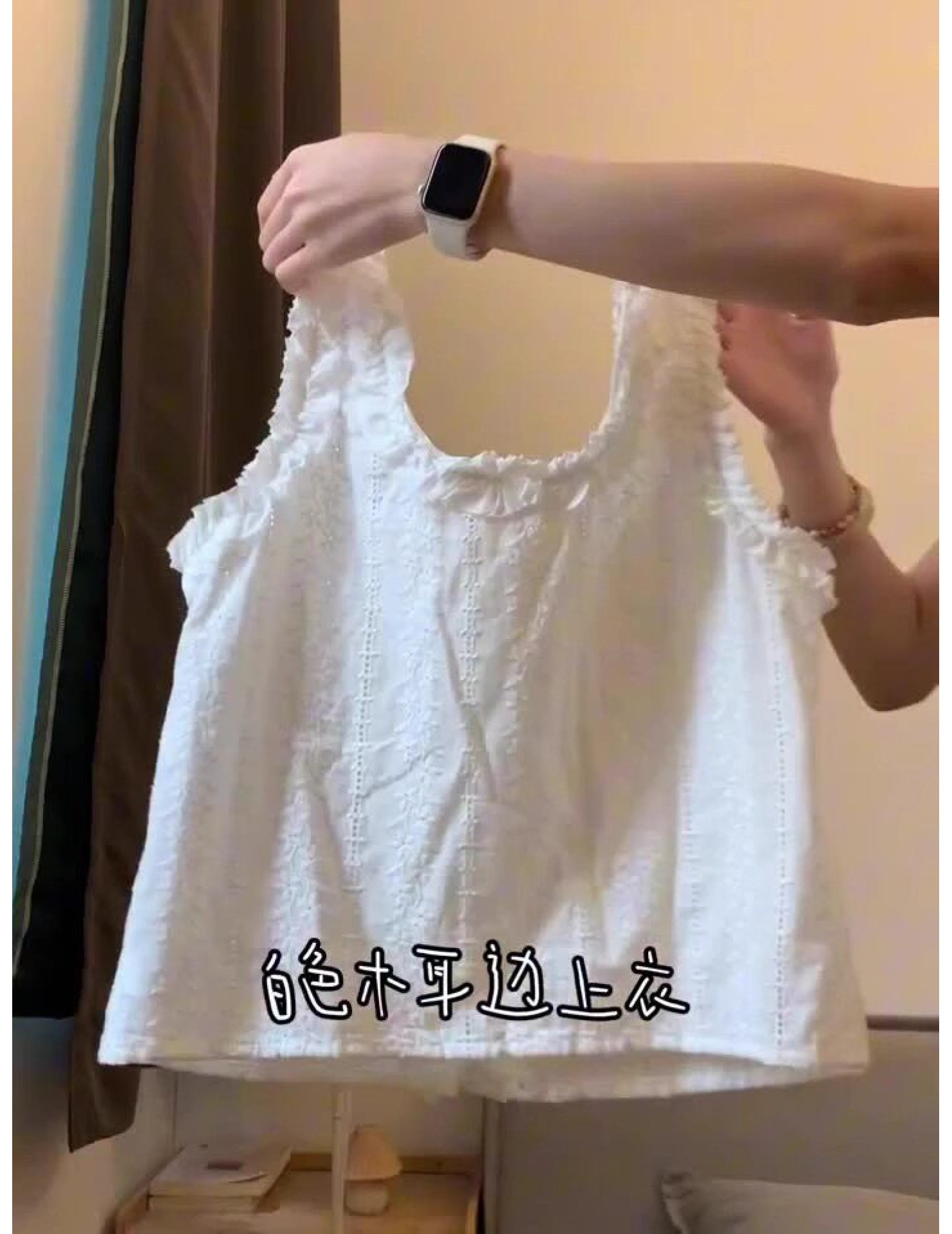FCSE6424010 清純系夏日穿搭套裝女鏤空花邊吊帶背心高腰蓬蓬花苞半身裙兩件套